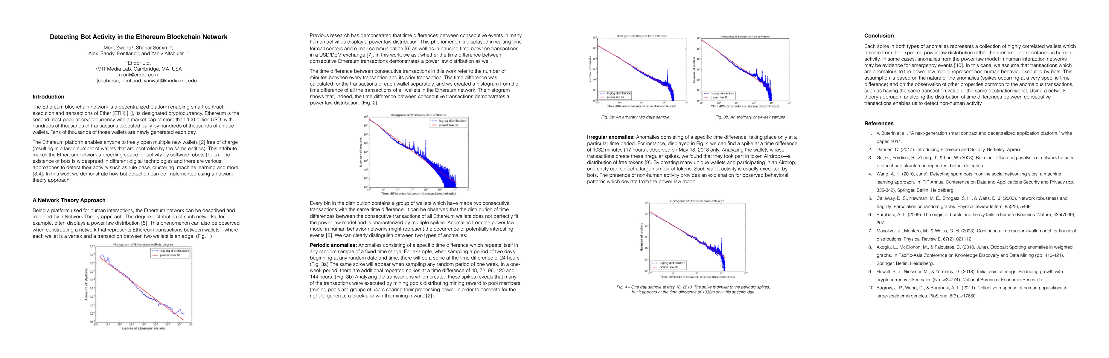 This paper explores the detection of bot activity within the Ethereum blockchain network using a network theory approach. It highlights the prevalence of bot-controlled wallets and proposes a method to identify such activity based on the network's structural properties.