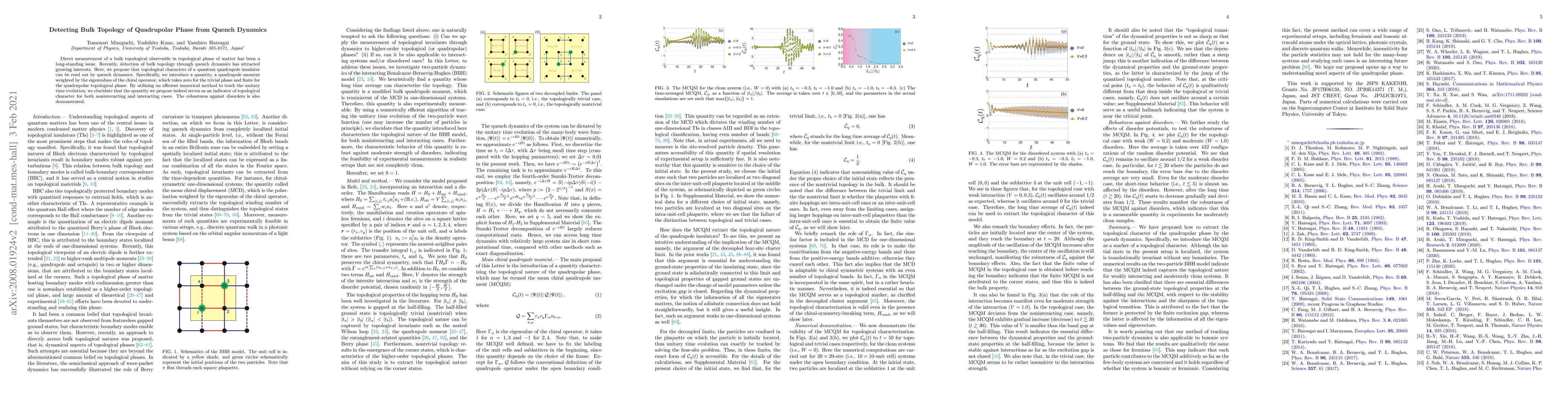 This paper proposes a method to detect the bulk topology of a quadrupolar phase through quench dynamics, introducing a new quantity that indicates topological character by tracking unitary time evolution. The robustness of this approach is shown to hold even in the presence of disorder.
