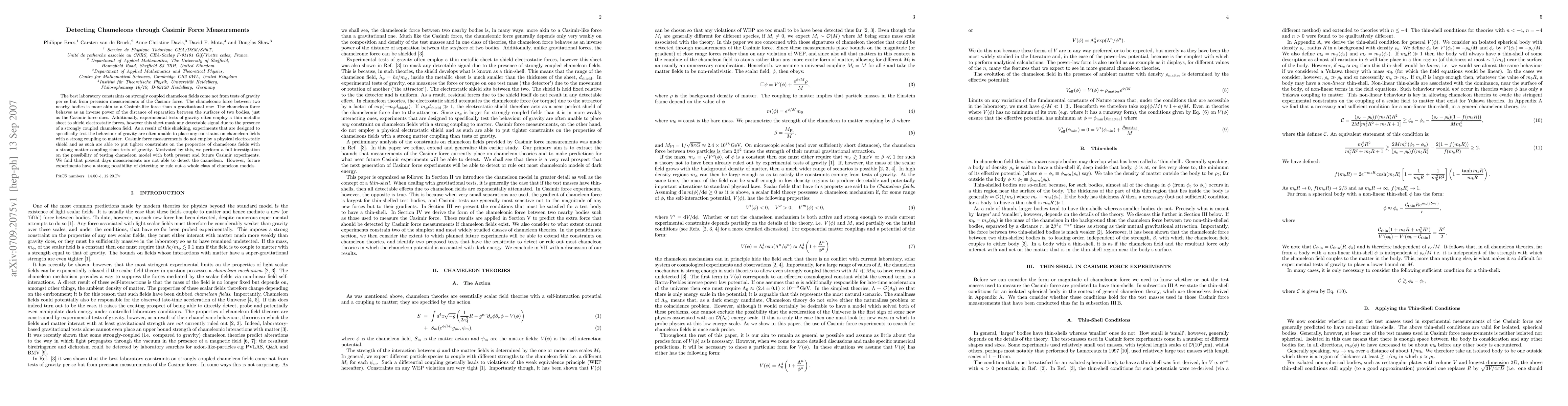 This paper investigates the potential of Casimir force measurements to detect strongly coupled chameleon fields, which behave similarly to a Casimir-like force. Current gravity tests fail to detect these chameleons due to shielding effects, but Casimir experiments, which do not use electrostatic shields, can place tighter constraints. The study concludes that current measurements cannot detect chameleons, but future experiments hold promise for detecting or ruling out certain chameleon models.