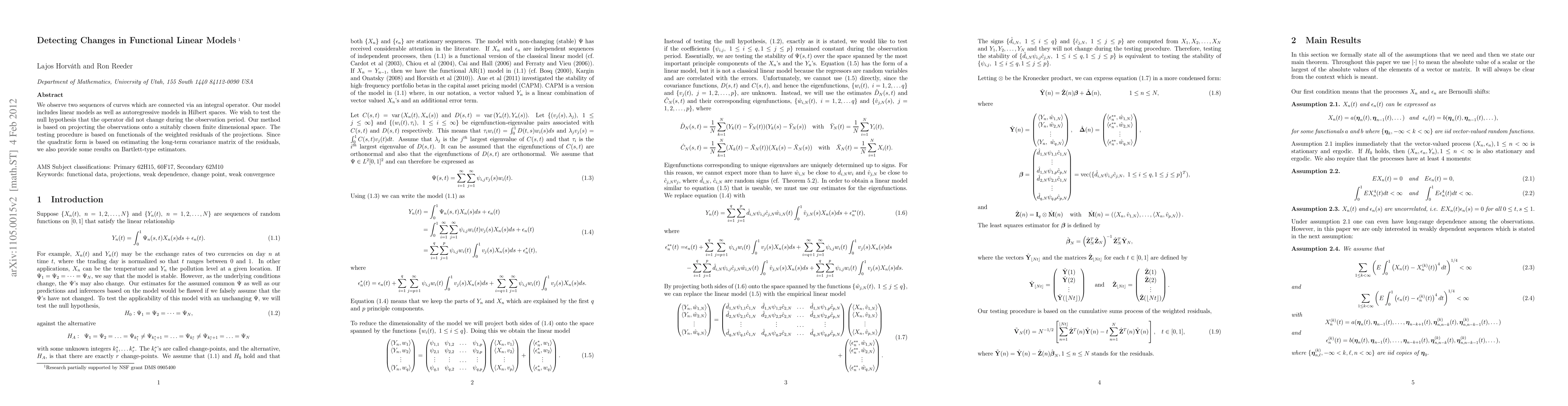 We observe two sequences of curve which are connected via an integral operator. Our model includes linear models as well as autoregressive models in Hilbert spaces. We wish to test the null hypothesis that the operator did not change during the observation period. Our method is based on projecting the observations onto a suitably chosen finite dimensional space. The testing procedure is based on functionals of the weighted residuals of the projections. Since the quadratic form is based on estimating the long-term covariance matrix of the residuals, we also provide some results on Bartlett-type estimators.