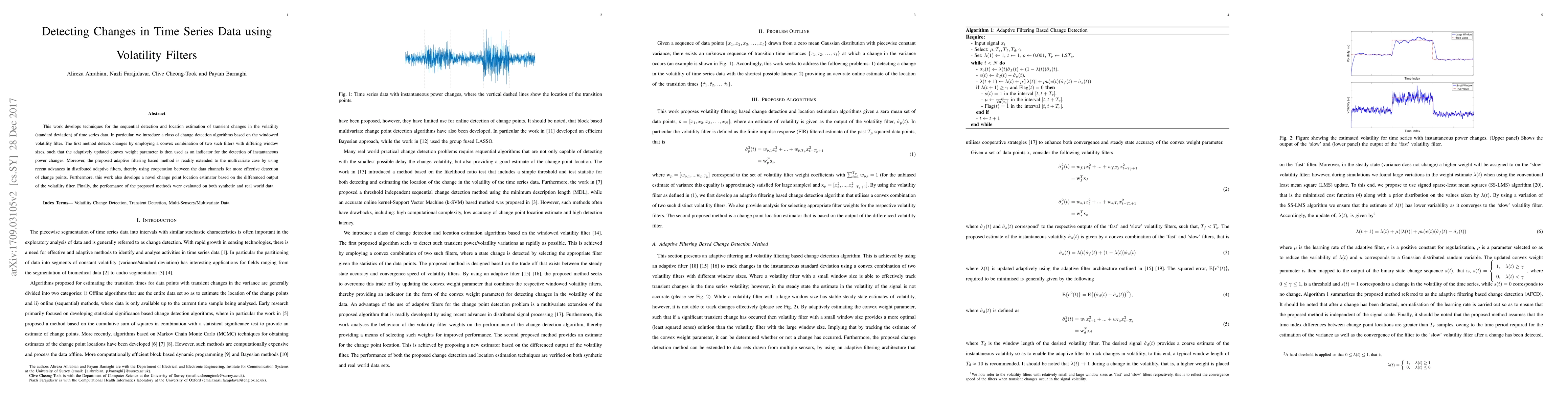 This research paper introduces new methods to detect changes in time series data, including a volatility filter-based approach that uses cooperation between data channels for more effective detection of change points.