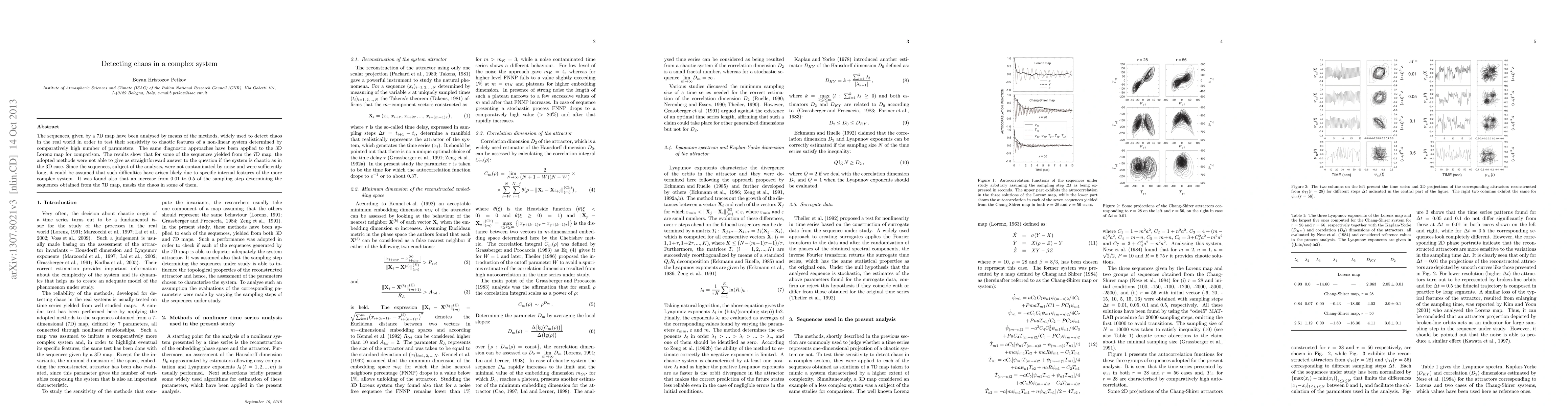 The sequences, given by a 7D map have been analysed by means of the methods, widely used to detect chaos in the real world in order to test their sensitivity to chaotic features of a non-linear system determined by comparatively high number of parameters. The same diagnostic approaches have been applied to the 3D Lorenz map for comparison. The results show that for some of the sequences yielded from the 7D map, the adopted methods were not able to give as straightforward answer to the question if the system is chaotic as in the 3D case. Since the sequences, subject of the analysis, were not contaminated by noise and were sufficiently long, it could be assumed that such difficulties have arisen likely due to specific internal features of the more complex system. It was found also that an increase from 0.01 to 0.5 of the sampling step determining the sequences obtained from the 7D map, masks the chaos in some of them.