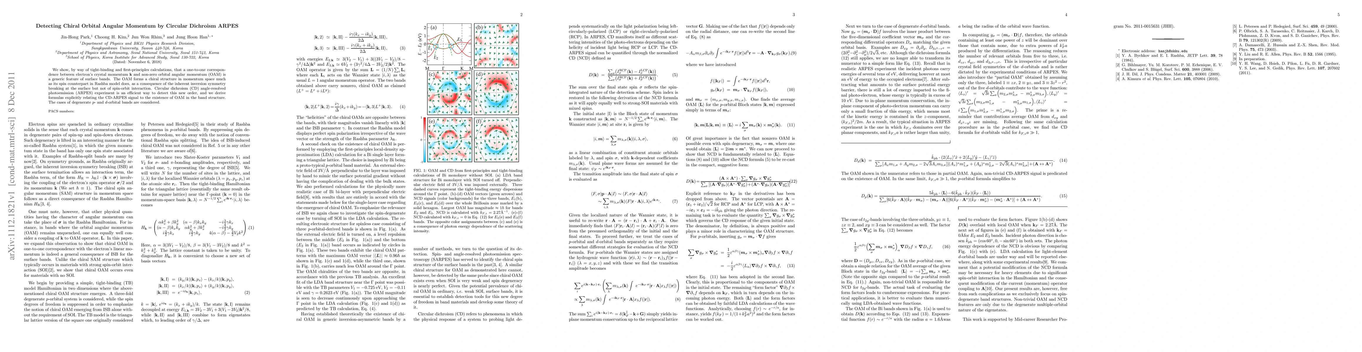 This paper demonstrates that surface bands exhibit a chiral structure in momentum space due to inversion symmetry breaking, akin to the Rashba model's spin counterpart. Circular dichroism angle-resolved photoemission spectroscopy (CD-ARPES) is proposed as an effective method to detect this chiral orbital angular momentum (OAM), with derived formulas linking the CD-ARPES signal to OAM presence in the band structure.