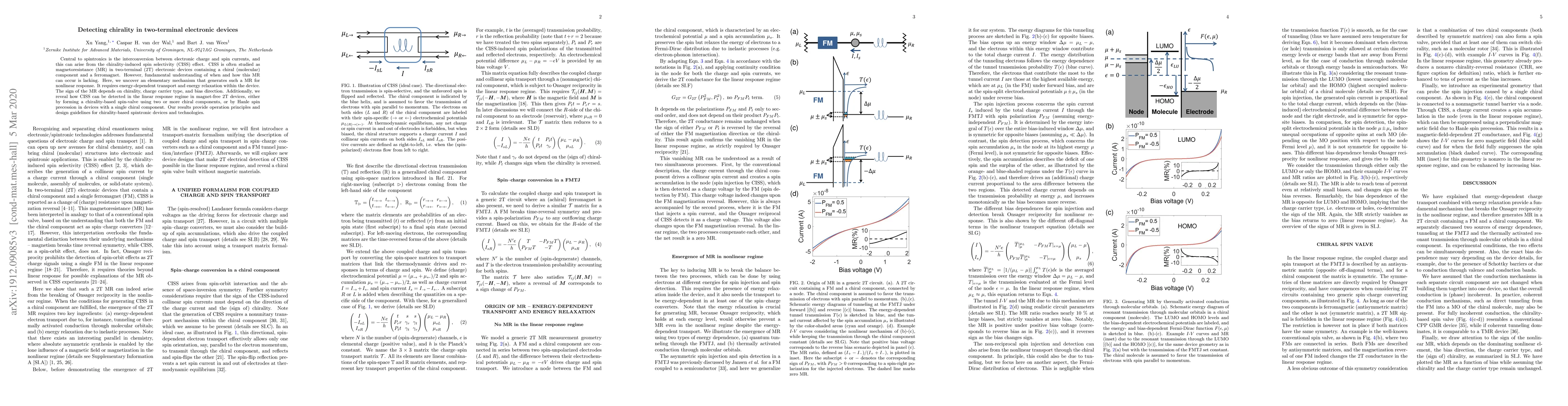 This paper explores the mechanism behind chirality-induced spin selectivity (CISS) in two-terminal electronic devices, revealing a nonlinear magnetoresistance (MR) effect dependent on chirality, charge carriers, and bias direction. It also demonstrates linear response detection of CISS through chirality-based spin-valves or Hanle spin precession, offering insights for spintronic device design.