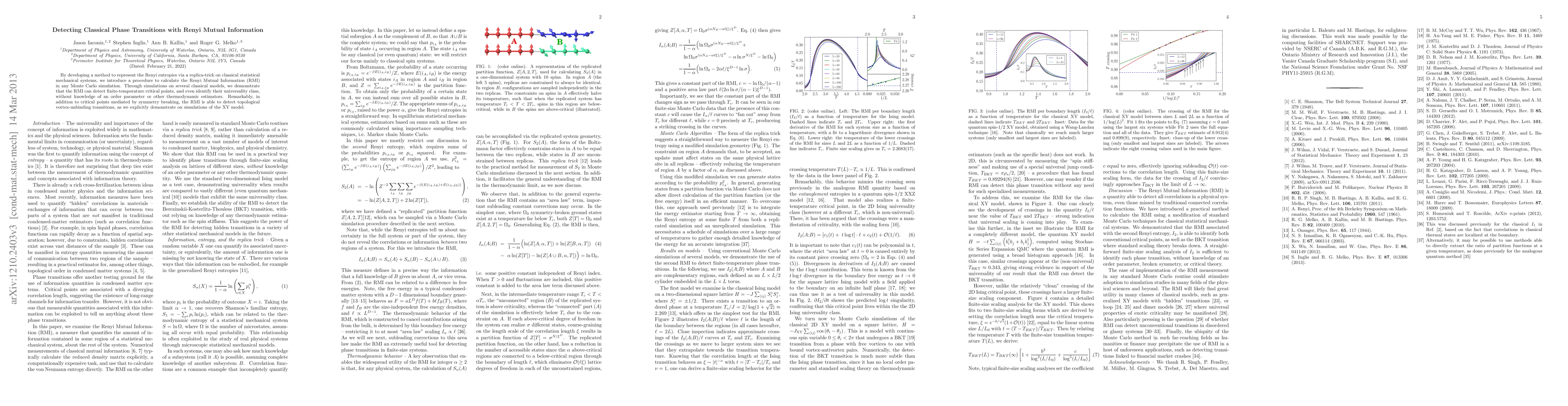 By developing a method to represent the Renyi entropies via a replica-trick on classical statistical mechanical systems, we introduce a procedure to calculate the Renyi Mutual Information in any Monte Carlo simulation. Through simulations on several classical models, we demonstrate that the Renyi Mutual Information can detect finite-temperature critical points, and even identify their universality class, without knowledge of an order parameter or other thermodynamic estimators. Remarkably, in addition to critical points mediated by symmetry breaking, the Renyi Mutual Information is able to detect topological vortex-unbinding transitions, as we explicitly demonstrate on simulations of the XY model.