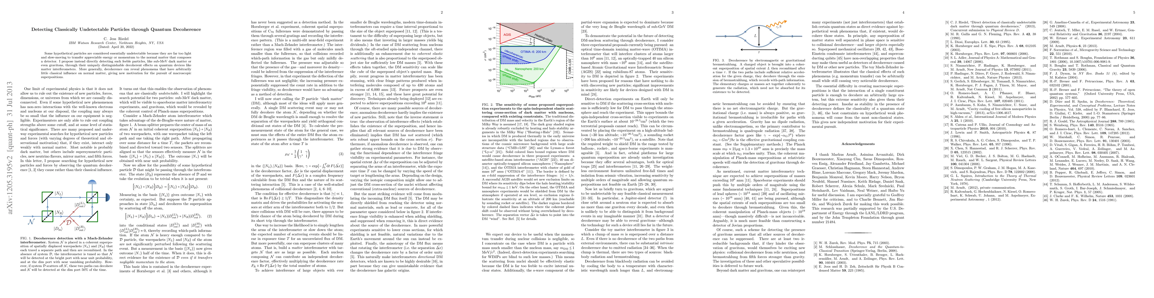 This paper proposes a novel method to detect classically undetectable particles, such as sub-MeV dark matter and gravitons, by observing their decoherent effects on quantum devices like matter interferometers. This approach highlights the potential of quantum decoherence to reveal phenomena with minimal classical influence.