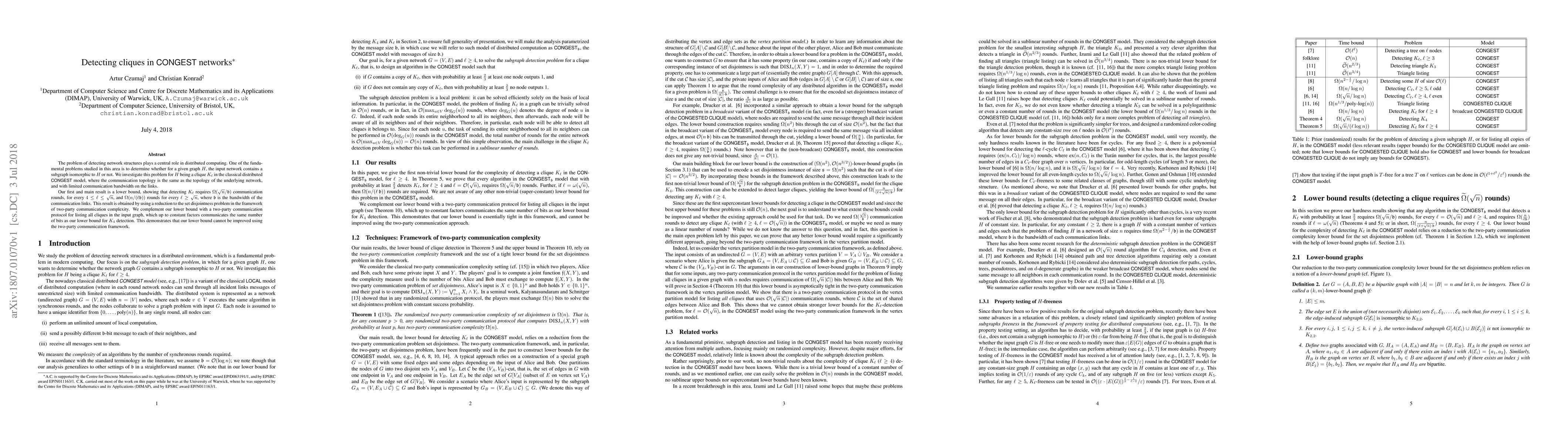 This paper investigates the distributed detection of cliques in CONGEST networks, establishing a lower bound of $\Omega(\sqrt{n} / b)$ communication rounds for detecting $K_{l}$ for $4 \le l \le \sqrt{n}$. It also presents a two-party communication protocol that lists all cliques, matching the lower bound for $K_4$ detection, suggesting no improvement is possible within this framework.