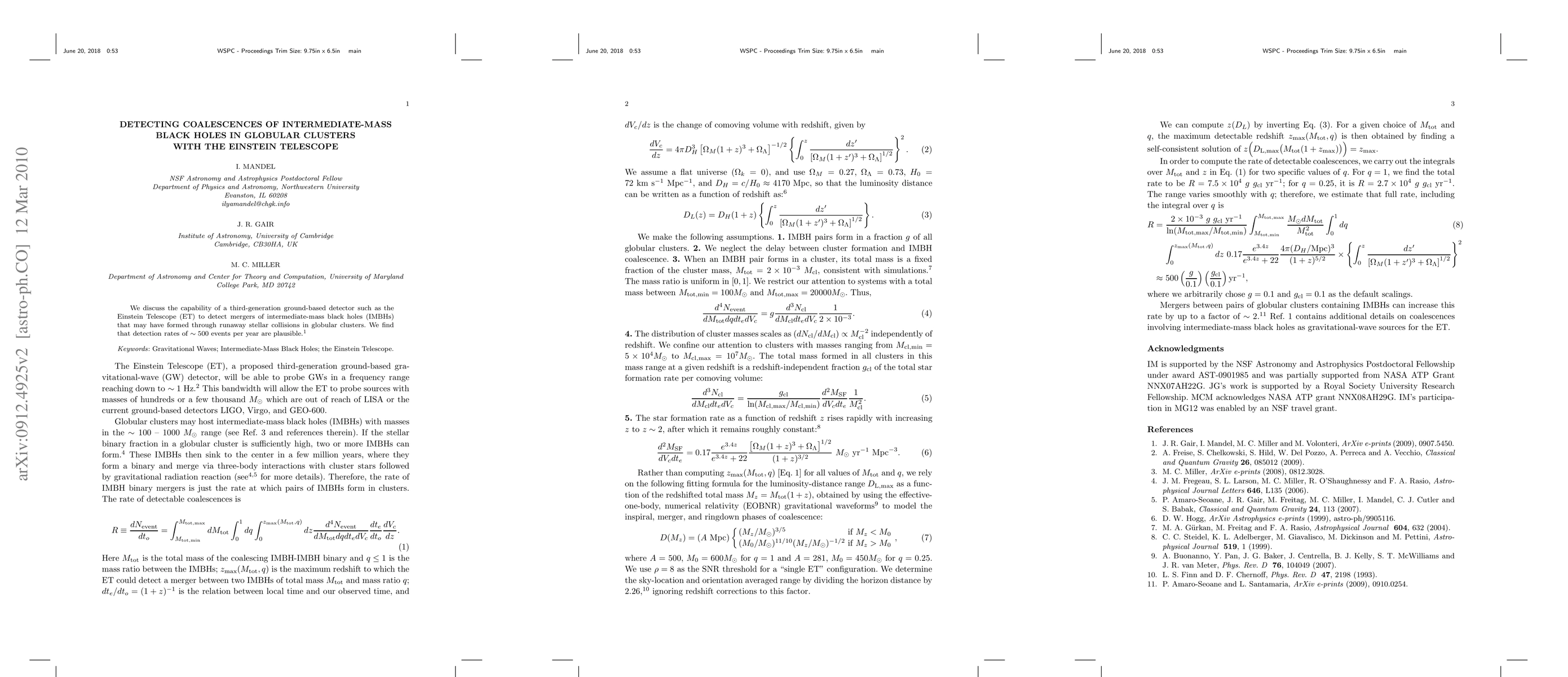 We discuss the capability of a third-generation ground-based detector such as the Einstein Telescope to detect mergers of intermediate-mass black holes that may have formed through runaway stellar collisions in globular clusters. We find that detection rates of 500 events per year are plausible.