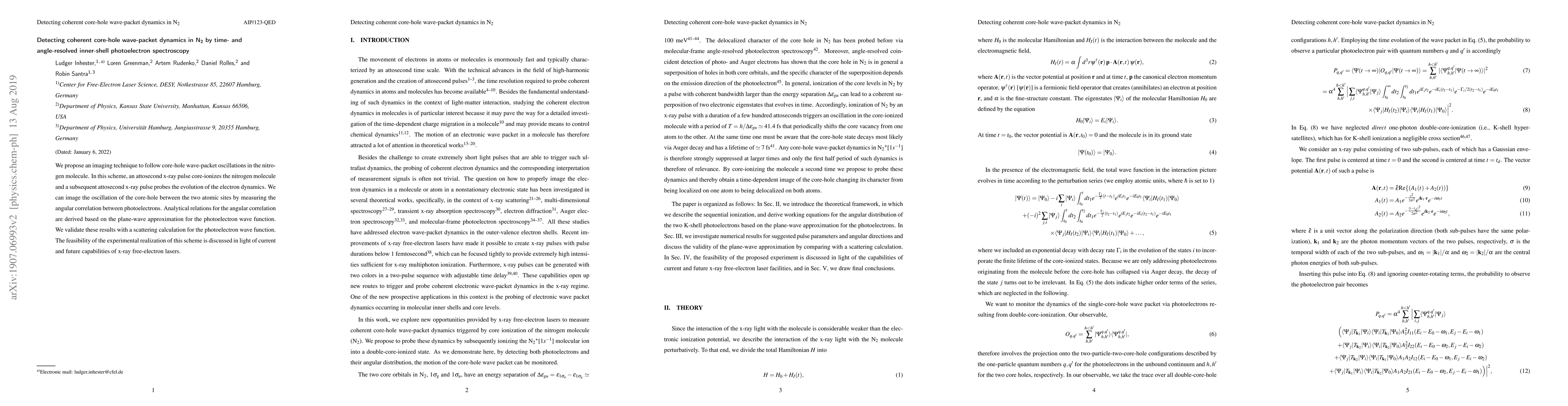 We propose an imaging technique to follow core-hole wave-packet oscillations in the nitrogen molecule. In this scheme, an attosecond x-ray pulse core-ionizes the nitrogen molecule and a subsequent attosecond x-ray pulse probes the evolution of the electron dynamics. We can image the oscillation of the core-hole between the two atomic sites by measuring the angular correlation between photoelectrons. Analytical relations for the angular correlation are derived based on the plane-wave approximation for the photoelectron wave function. We validate these results with a scattering calculation for the photoelectron wave function. The feasibility of the experimental realization of this scheme is discussed in light of current and future capabilities of x-ray free-electron lasers.