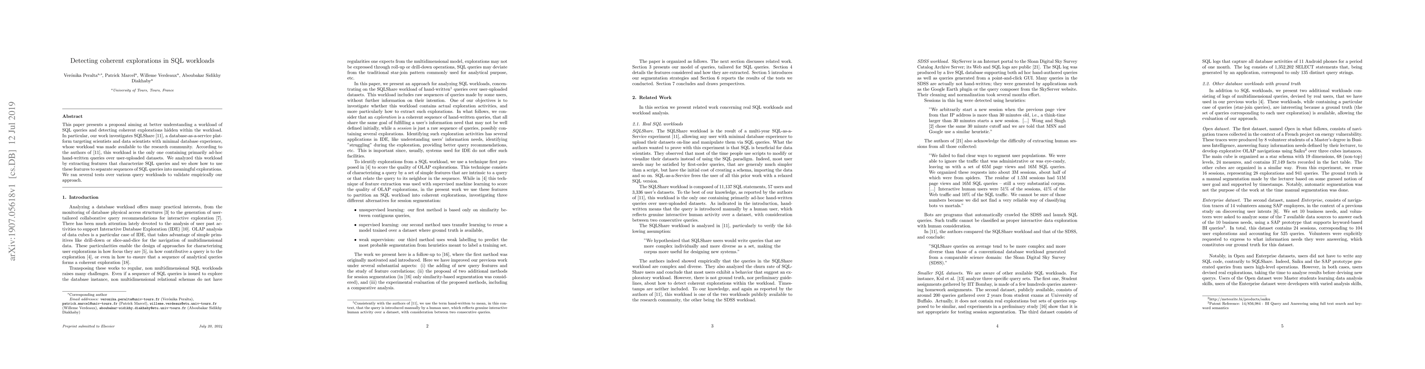 This paper proposes a method to detect coherent explorations within SQL workloads, particularly analyzing SQLShare's ad-hoc queries. It extracts features from SQL queries to identify meaningful exploration sequences, validated through empirical tests.