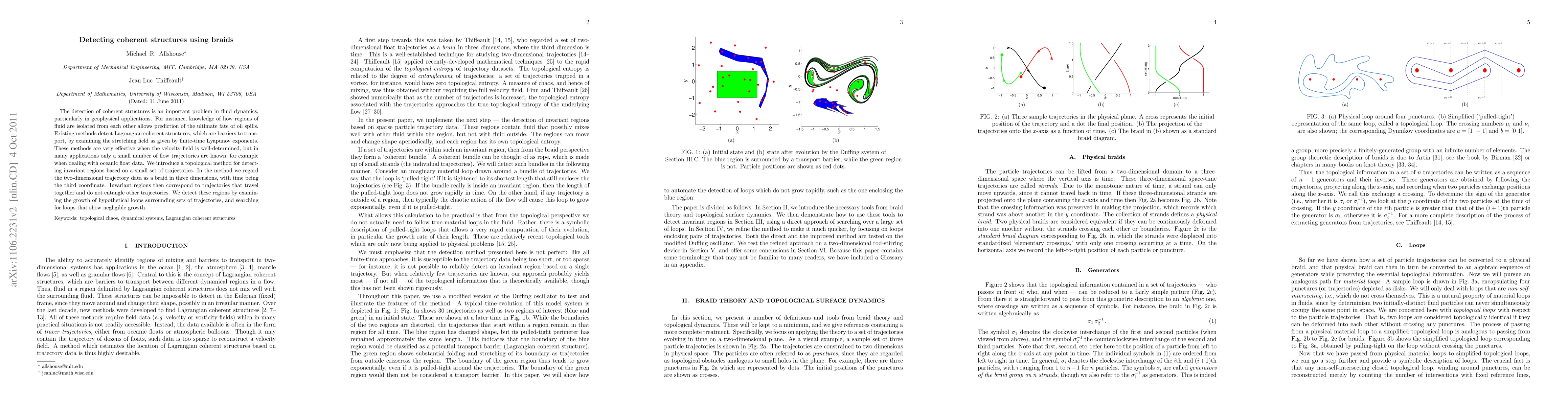 This paper introduces a topological method for detecting coherent structures in fluid dynamics using braid theory, where trajectory data is represented as braids in three dimensions. The method identifies invariant regions by examining hypothetical loops that show negligible growth, offering an alternative to existing methods when limited trajectory data is available.