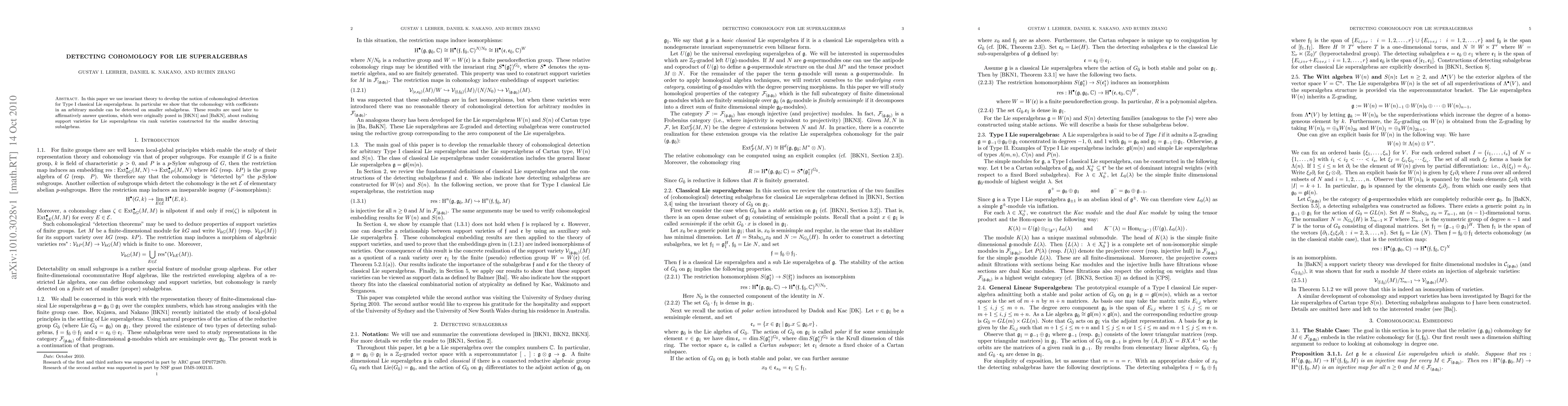 This paper utilizes invariant theory to establish cohomological detection for Type I classical Lie superalgebras, demonstrating that cohomology with arbitrary module coefficients can be detected on smaller subalgebras. These findings help answer prior questions about realizing support varieties for Lie superalgebras using rank varieties from detecting subalgebras.