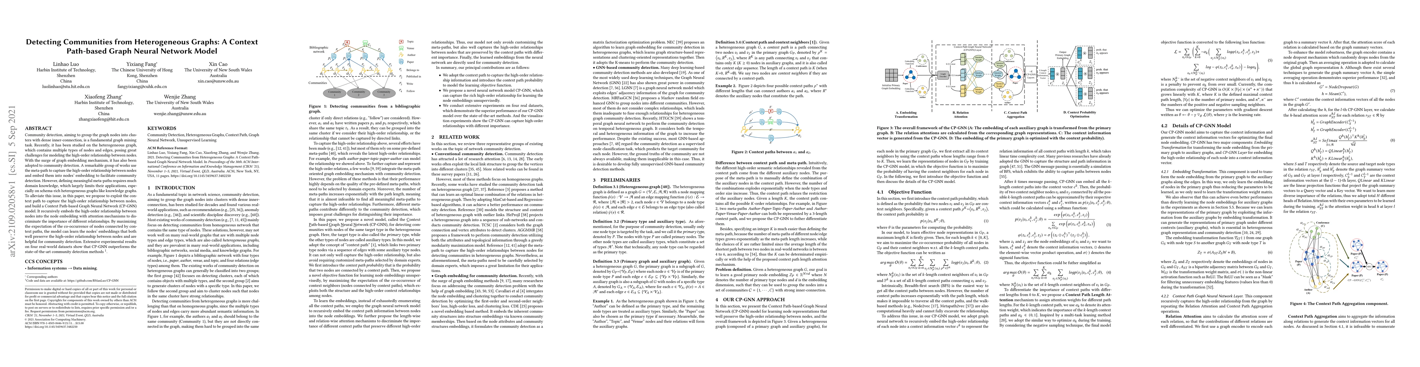 A new graph neural network model called CP-GNN is proposed to detect communities in heterogeneous graphs by leveraging context paths, outperforming existing methods on real-world datasets.