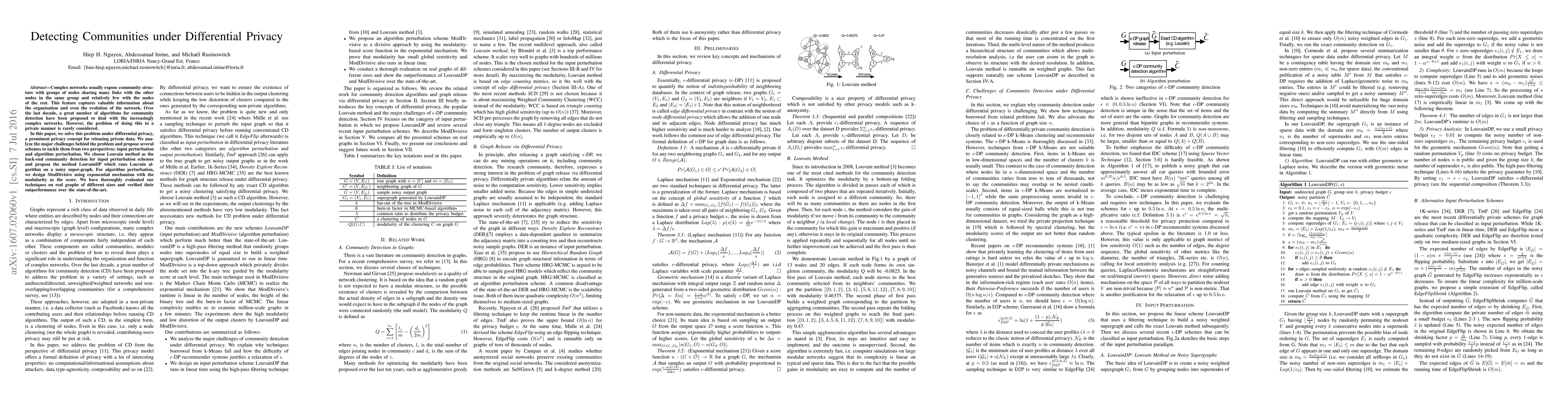 This paper proposes methods for detecting communities in complex networks while maintaining privacy using differential privacy, outperforming existing algorithms on real graph datasets.