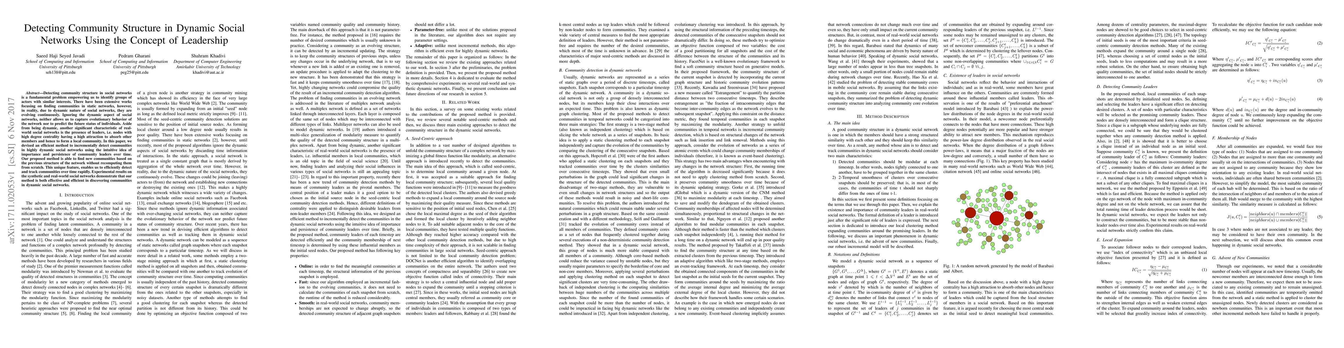 This paper proposes an efficient method for detecting community structures in dynamic social networks by leveraging the concept of leadership. The method incrementally identifies communities based on the persistence of influential leaders, allowing for rapid tracking of evolving network structures without full recomputation.