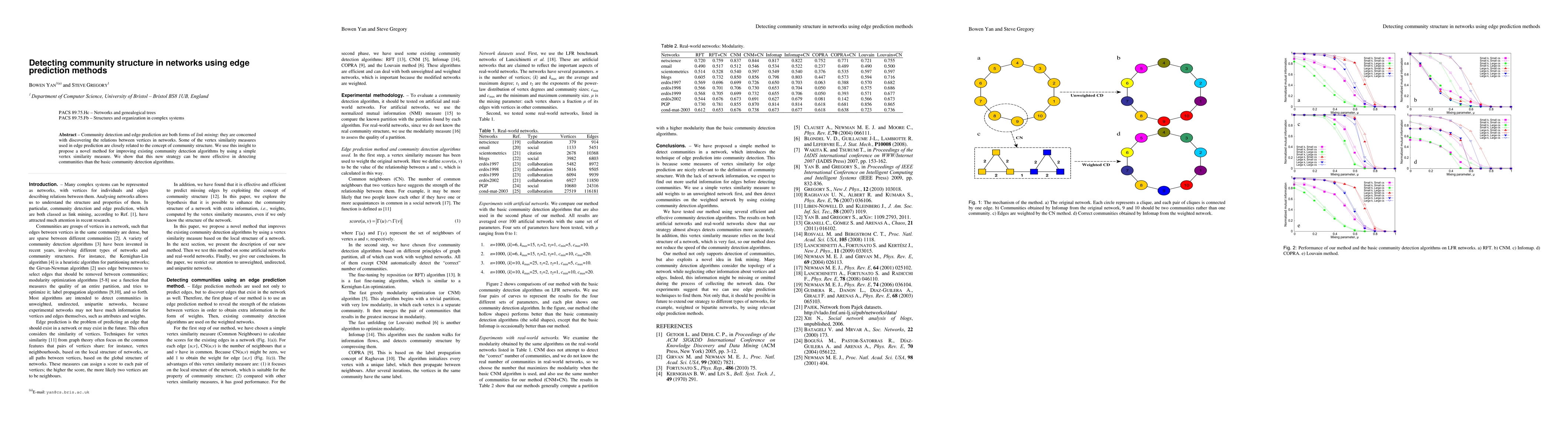 This paper proposes a novel method to enhance community detection in networks by leveraging edge prediction techniques, demonstrating improved effectiveness over traditional community detection algorithms. The approach uses a simple vertex similarity measure linked to community structure, showing better performance in community identification.