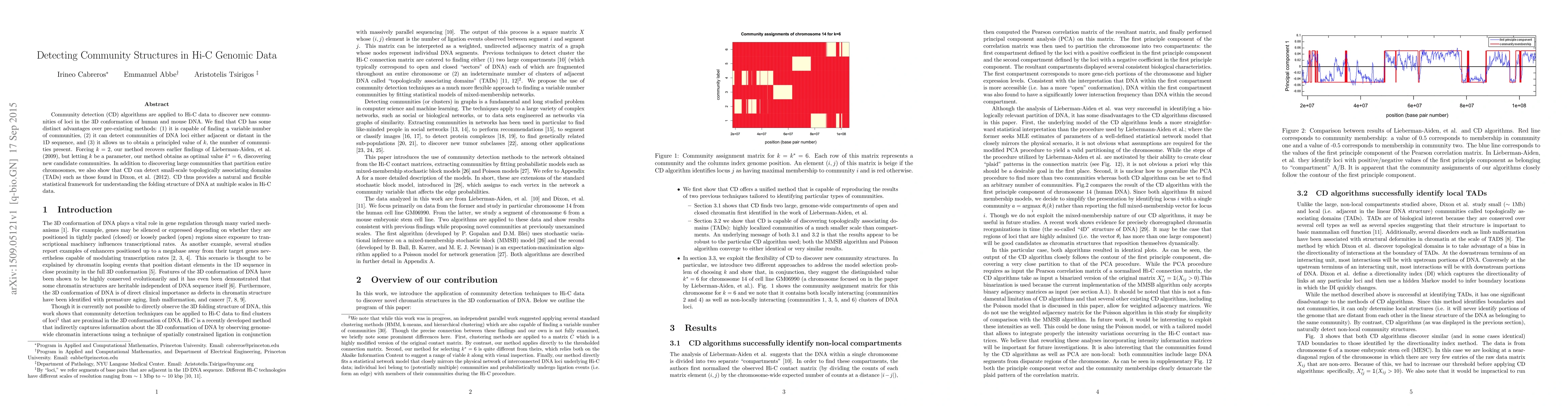 This paper applies community detection algorithms to Hi-C genomic data to identify new communities of DNA loci in the 3D conformation of human and mouse DNA, revealing advantages over existing methods by detecting both adjacent and distant loci, and determining the optimal number of communities.