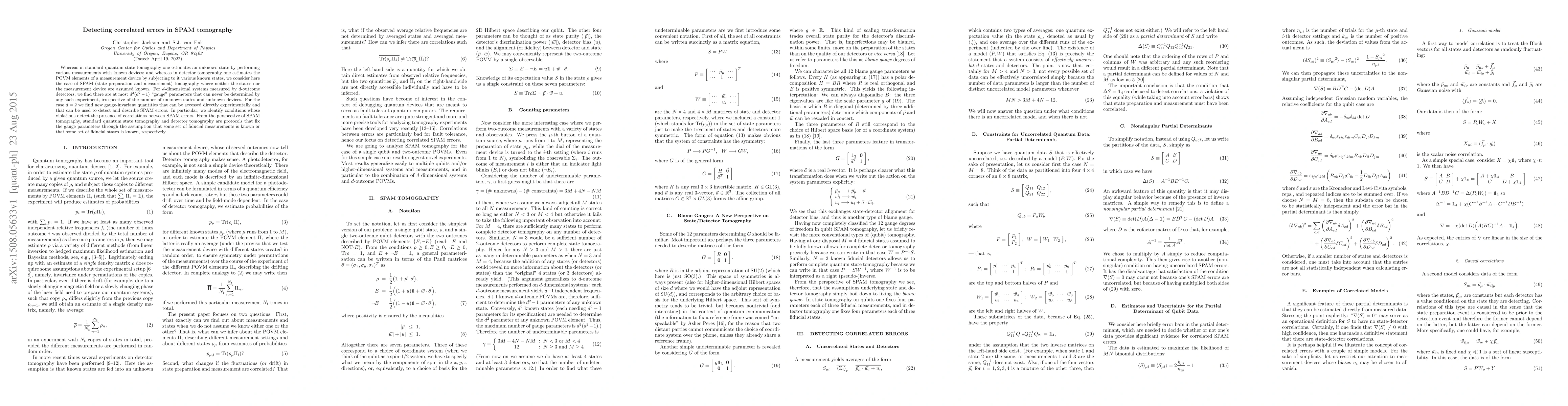 This paper discusses SPAM tomography, where both state preparation and measurement devices are unknown, and identifies up to $d^2(d^2-1)$ gauge parameters that remain undeterminable. For $d=2$, it introduces gauge-invariant quantities to detect correlated SPAM errors, highlighting how standard quantum state and detector tomography fix these parameters through known fiducial measurements or states.
