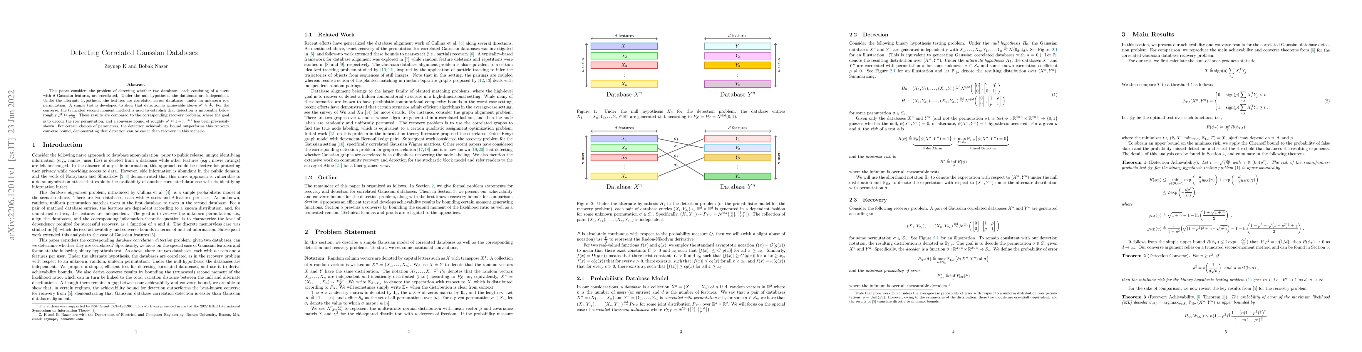 This work provides insights into the fundamental limits of detecting correlated Gaussian databases, which has implications for privacy and data matching problems in machine learning and data science.