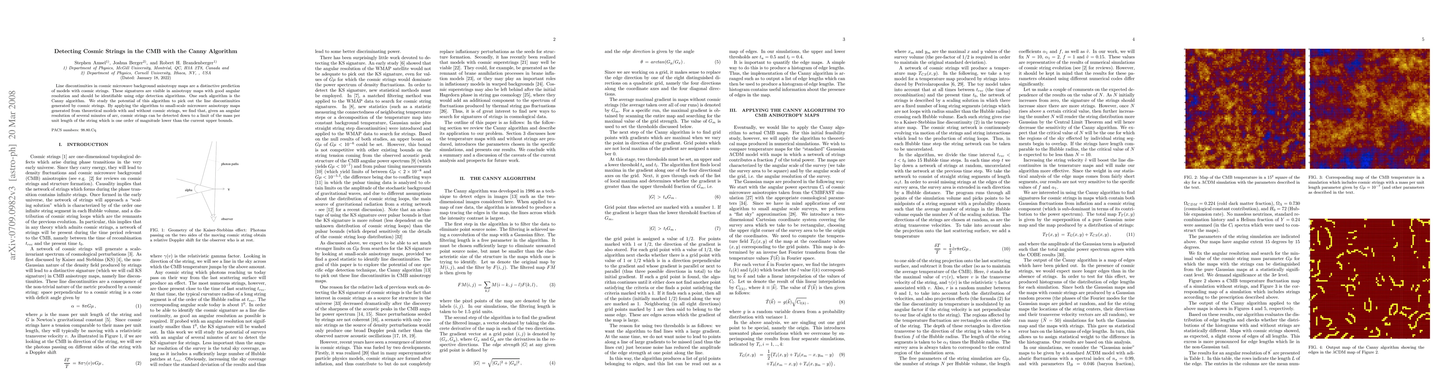 This study explores the use of the Canny edge detection algorithm to identify cosmic strings' signatures in cosmic microwave background anisotropy maps. The algorithm successfully detects line discontinuities down to a mass per unit length limit, providing detection sensitivity one order of magnitude beyond current upper bounds.