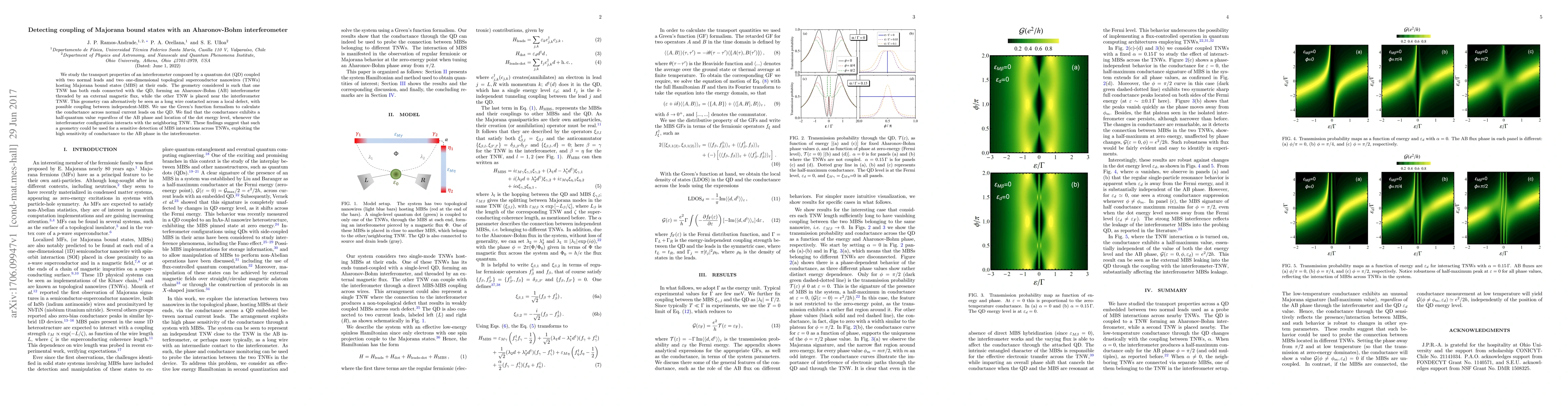 The paper investigates an interferometer setup with quantum dot and topological superconductor nanowires hosting Majorana bound states, revealing half-quantum conductance regardless of Aharonov-Bohm phase, suggesting a method for detecting Majorana bound state interactions.