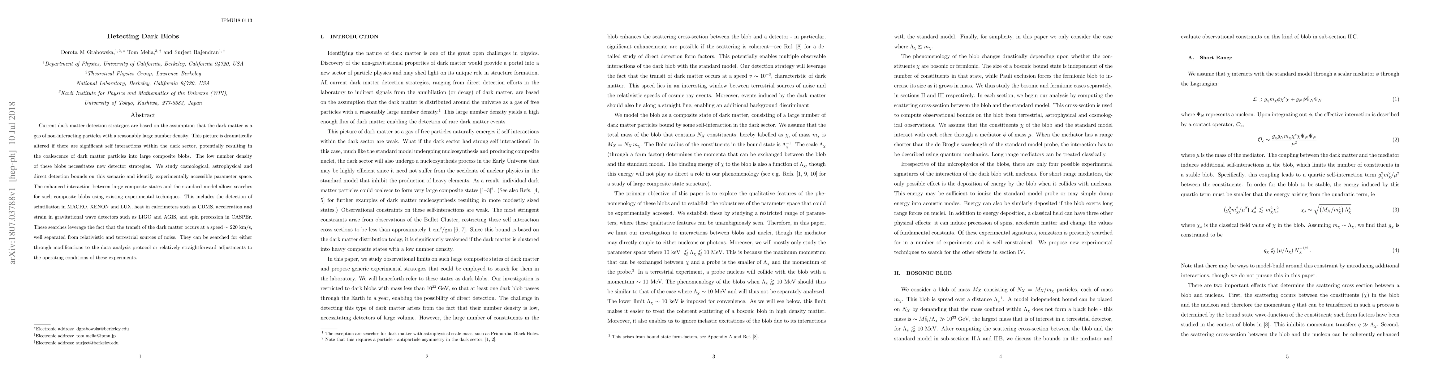 This paper explores the detection of dark matter in the form of large composite "blobs" resulting from significant self-interactions within the dark sector, proposing new detection strategies leveraging existing experimental techniques like scintillation, heat, gravitational wave, and spin precession measurements. It identifies experimentally accessible parameter space and suggests modifications to current data analysis protocols to enhance detection capabilities.