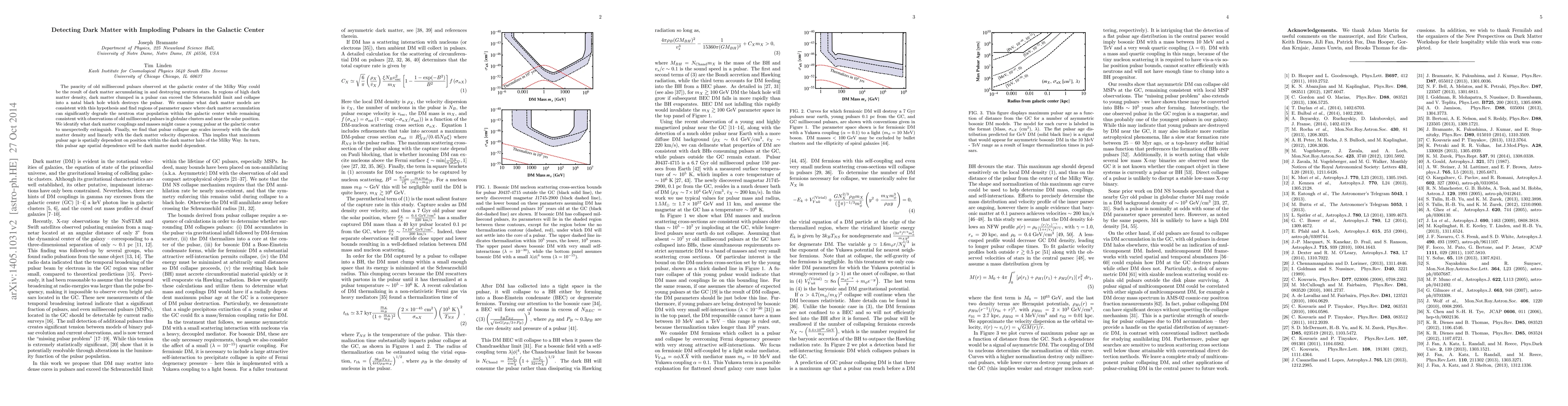 The paucity of old millisecond pulsars observed at the galactic center of the Milky Way could be the result of dark matter accumulating in and destroying neutron stars. In regions of high dark matter density, dark matter clumped in a pulsar can exceed the Schwarzschild limit and collapse into a natal black hole which destroys the pulsar. We examine what dark matter models are consistent with this hypothesis and find regions of parameter space where dark matter accumulation can significantly degrade the neutron star population within the galactic center while remaining consistent with observations of old millisecond pulsars in globular clusters and near the solar position. We identify what dark matter couplings and masses might cause a young pulsar at the galactic center to unexpectedly extinguish. Finally, we find that pulsar collapse age scales inversely with the dark matter density and linearly with the dark matter velocity dispersion. This implies that maximum pulsar age is spatially dependent on position within the dark matter halo of the Milky Way. In turn, this pulsar age spatial dependence will be dark matter model dependent.