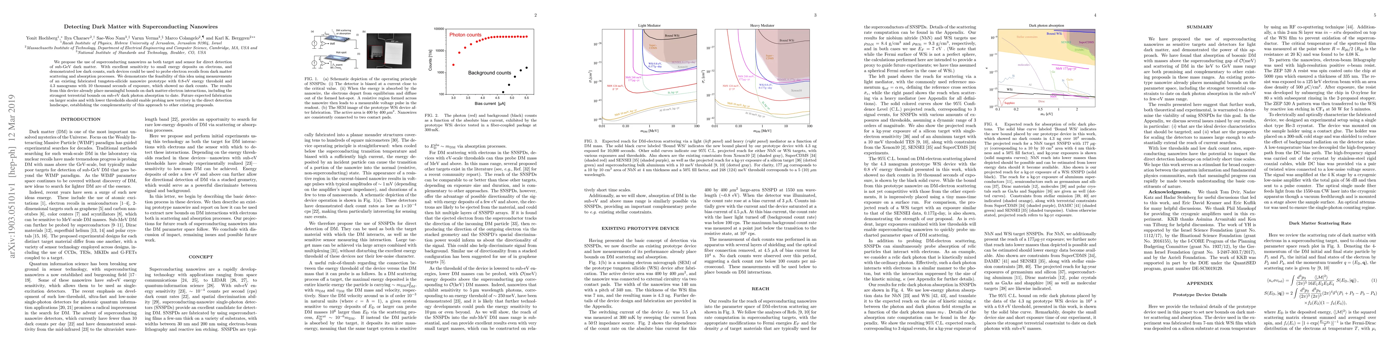 Researchers propose using superconducting nanowires to detect dark matter particles, setting strong bounds on interactions with electrons. The device shows promise for probing new territory in direct detection experiments.