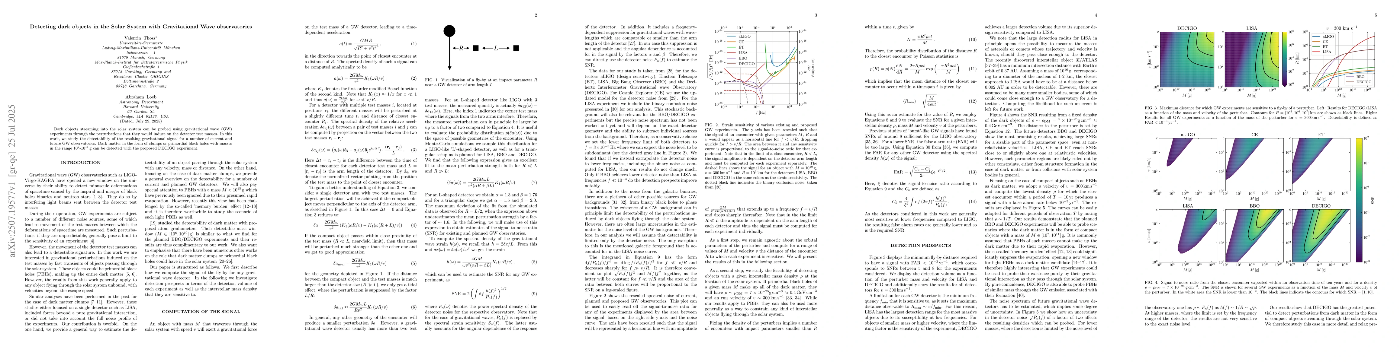 The research employed a combination of theoretical modeling and numerical simulations to investigate the detection of dark objects in the Solar System using gravitational wave observatories.