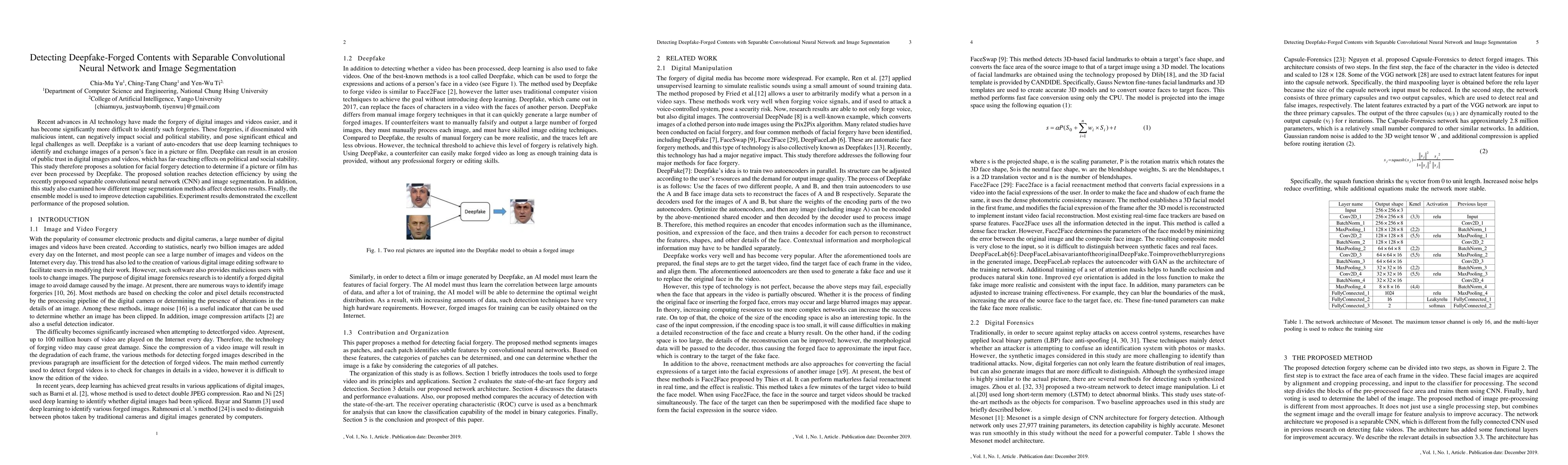 This paper proposes a method for detecting Deepfake-forged contents using a separable convolutional neural network (CNN) and image segmentation. The study evaluates various segmentation techniques and employs an ensemble model to enhance detection accuracy, achieving high performance in experiments.