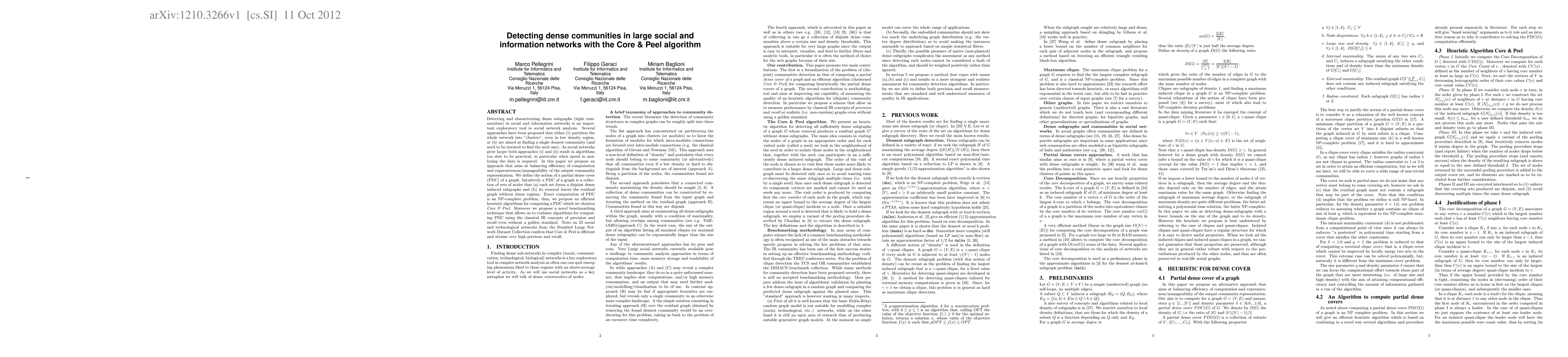 A new algorithm called Core & Peel detects dense communities in large social networks by proposing a partial dense cover, a collection of disjoint dense subgraphs that leave the residual graph without dense regions. The algorithm is efficient and achieves high precision and recall, making it suitable for analyzing growing social networks.