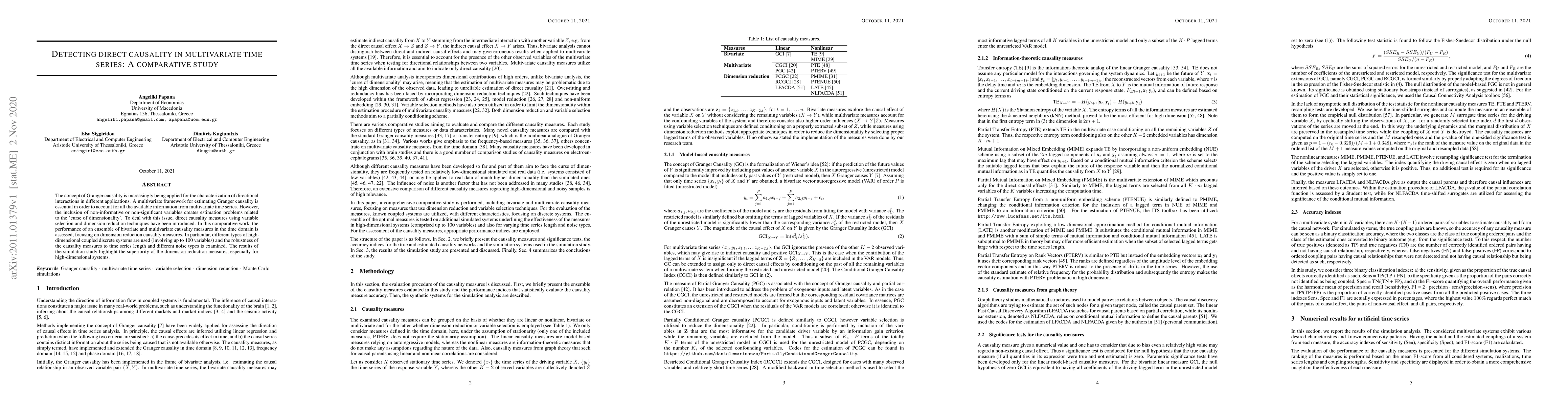 The concept of Granger causality is increasingly being applied for the characterization of directional interactions in different applications. A multivariate framework for estimating Granger causality is essential in order to account for all the available information from multivariate time series. However, the inclusion of non-informative or non-significant variables creates estimation problems related to the 'curse of dimensionality'. To deal with this issue, direct causality measures using variable selection and dimension reduction techniques have been introduced. In this comparative work, the performance of an ensemble of bivariate and multivariate causality measures in the time domain is assessed, focusing on dimension reduction causality measures. In particular, different types of high-dimensional coupled discrete systems are used (involving up to 100 variables) and the robustness of the causality measures to time series length and different noise types is examined. The results of the simulation study highlight the superiority of the dimension reduction measures, especially for high-dimensional systems.