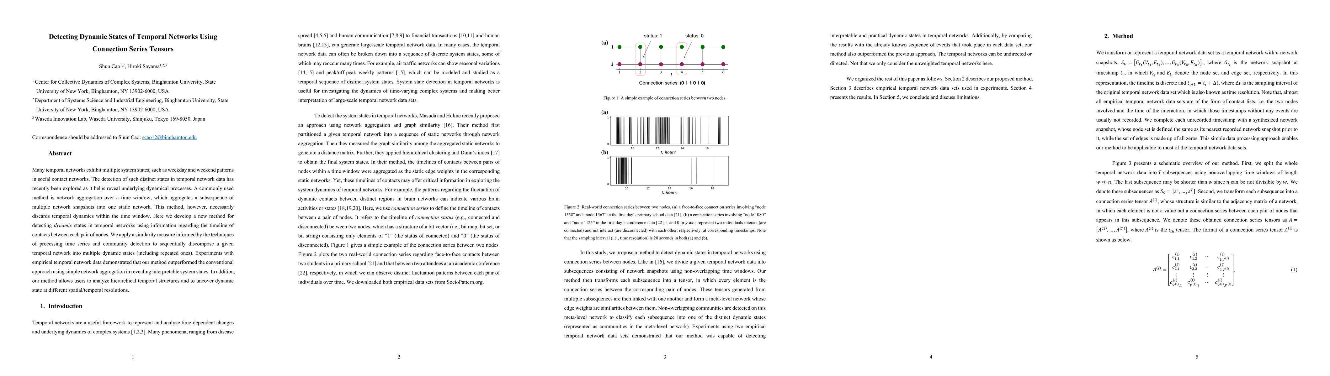 Many temporal networks exhibit multiple system states, such as weekday and weekend patterns in social contact networks. The detection of such distinct states in temporal network data has recently been explored as it helps reveal underlying dynamical processes. A commonly used method is network aggregation over a time window, which aggregates a subsequence of multiple network snapshots into one static network. This method, however, necessarily discards temporal dynamics within the time window. Here we develop a new method for detecting dynamic states in temporal networks using information regarding the timeline of contacts between each pair of nodes. We apply a similarity measure informed by the techniques of processing time series and community detection to sequentially discompose a given temporal network into multiple dynamic states (including repeated ones). Experiments with empirical temporal network data demonstrated that our method outperformed the conventional approach using simple network aggregation in revealing interpretable system states. In addition, our method allows users to analyze hierarchical temporal structures and to uncover dynamic state at different spatial/temporal resolutions.