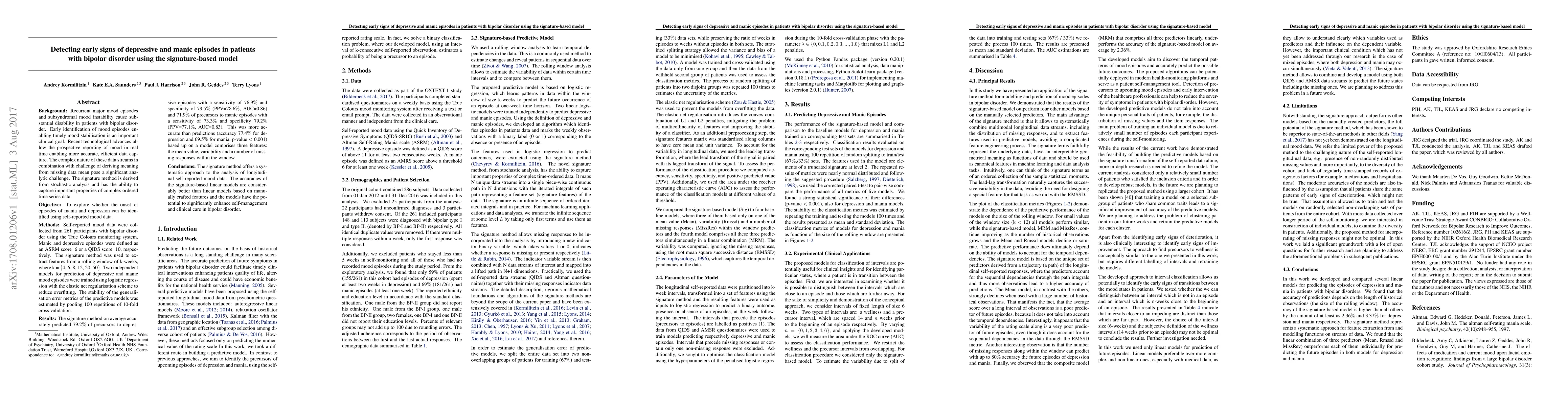 Researchers used a signature-based model to analyze real-time self-reported mood data from patients with bipolar disorder, identifying early signs of manic and depressive episodes. The study aims to provide timely mood stabilization through more accurate data capture.