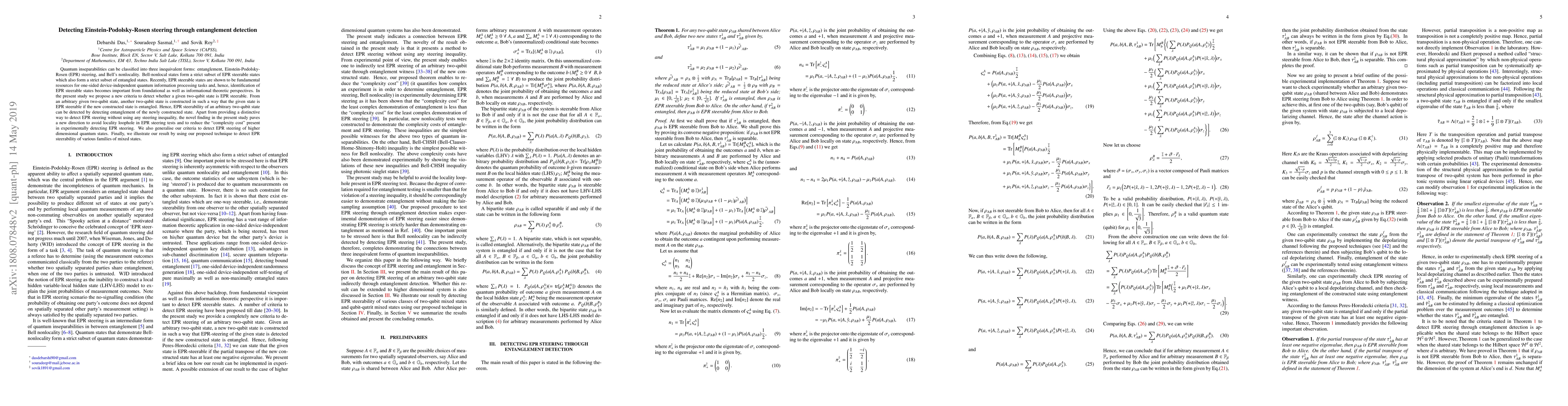 This paper proposes a new method to detect Einstein-Podolsky-Rosen (EPR) steering in two-qubit states by constructing another two-qubit state whose entanglement indicates the original state's EPR steerability. This method avoids the use of steering inequalities and helps to circumvent the locality loophole, reducing experimental complexity.