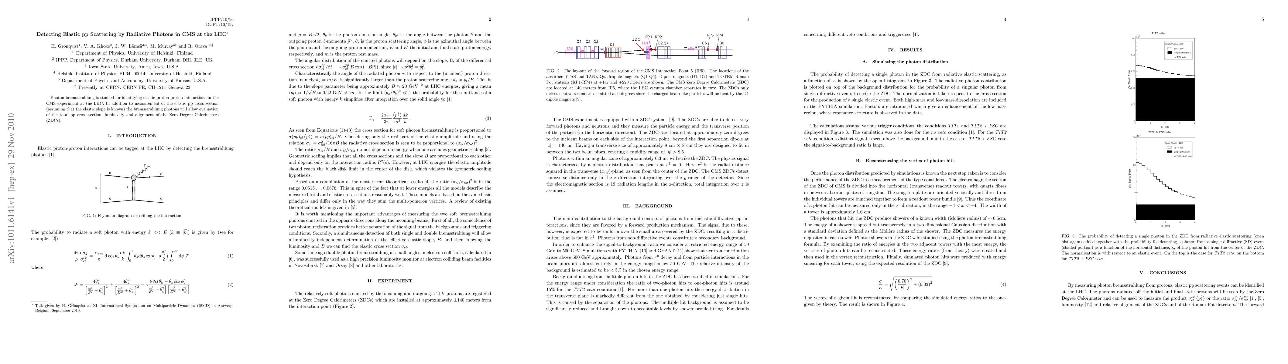 This research in the CMS experiment at LHC utilizes photon bremsstrahlung to detect elastic proton-proton interactions, enabling measurement of elastic pp cross section, evaluation of total pp cross section, determination of luminosity, and assessment of Zero Degree Calorimeters (ZDCs) alignment.