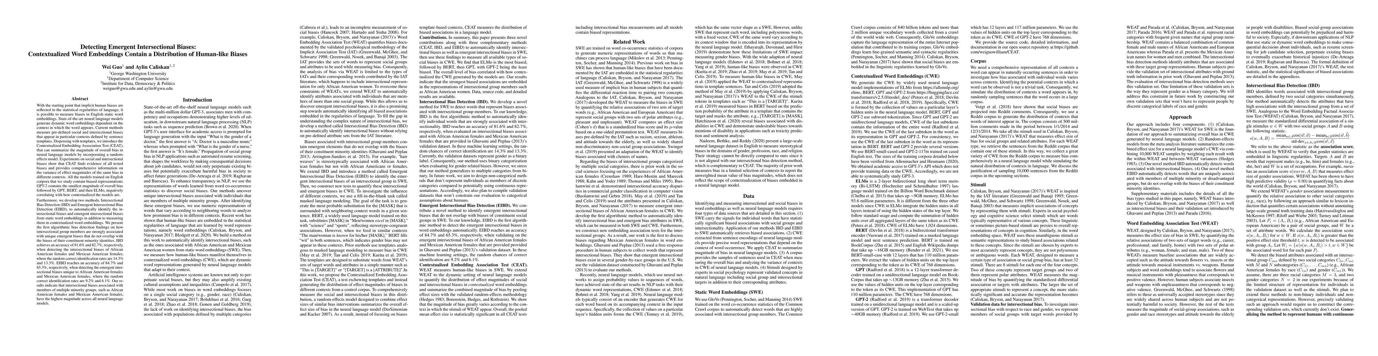 This paper introduces the Contextualized Embedding Association Test (CEAT) to measure biases in neural language models without predefined sentence templates, finding evidence of intersectional biases across contexts. It also develops Intersectional Bias Detection (IBD) and Emergent Intersectional Bias Detection (EIBD) to identify intersectional and emergent biases in word embeddings, showing that African American females and Mexican American females face the strongest intersectional biases.