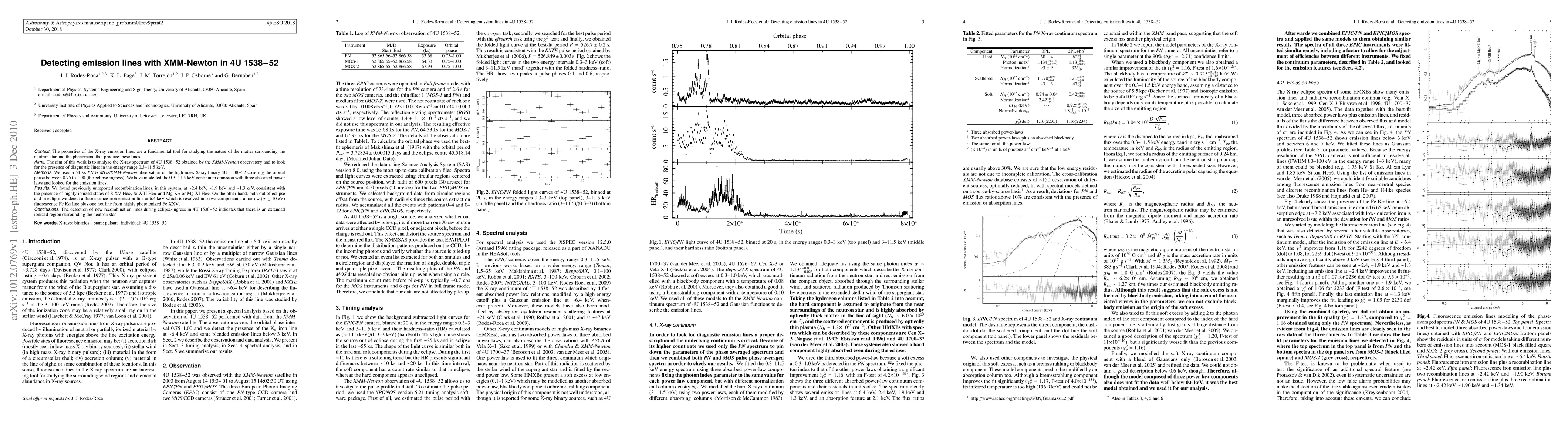 Researchers used XMM-Newton to analyze the X-ray spectrum of 4U 1538-52, a neutron star binary, and detected new recombination lines and a fluorescence iron emission line, indicating an extended ionized region around the neutron star.