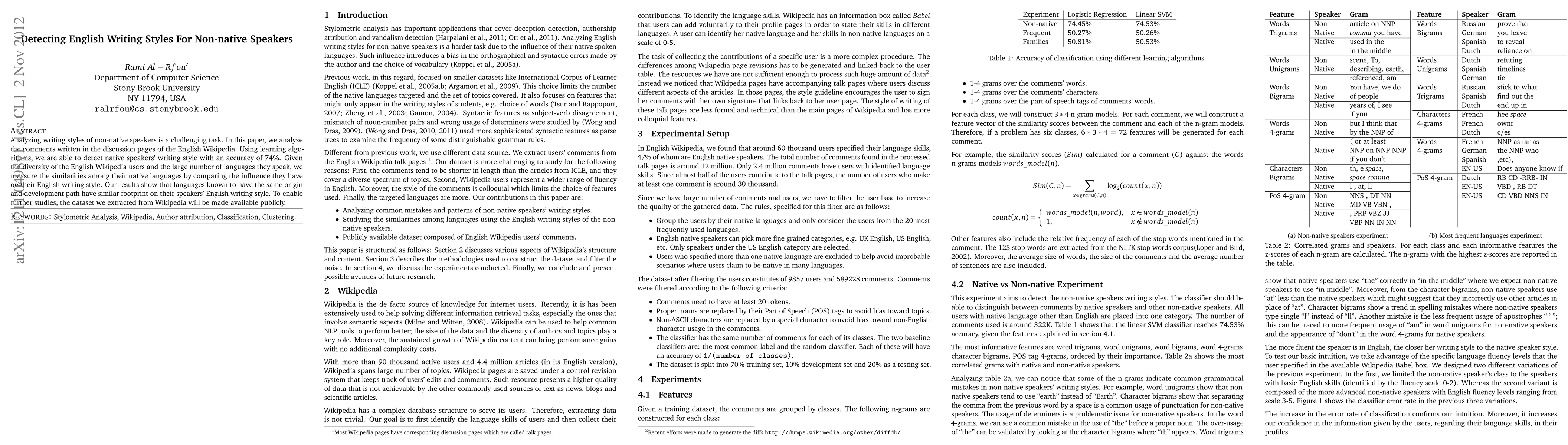 This paper analyzes the writing styles of non-native English speakers on English Wikipedia, achieving a 74% accuracy in detecting native speaker styles. It finds that languages with similar origins influence their speakers' English writing styles similarly, and a publicly available dataset is provided for further research.