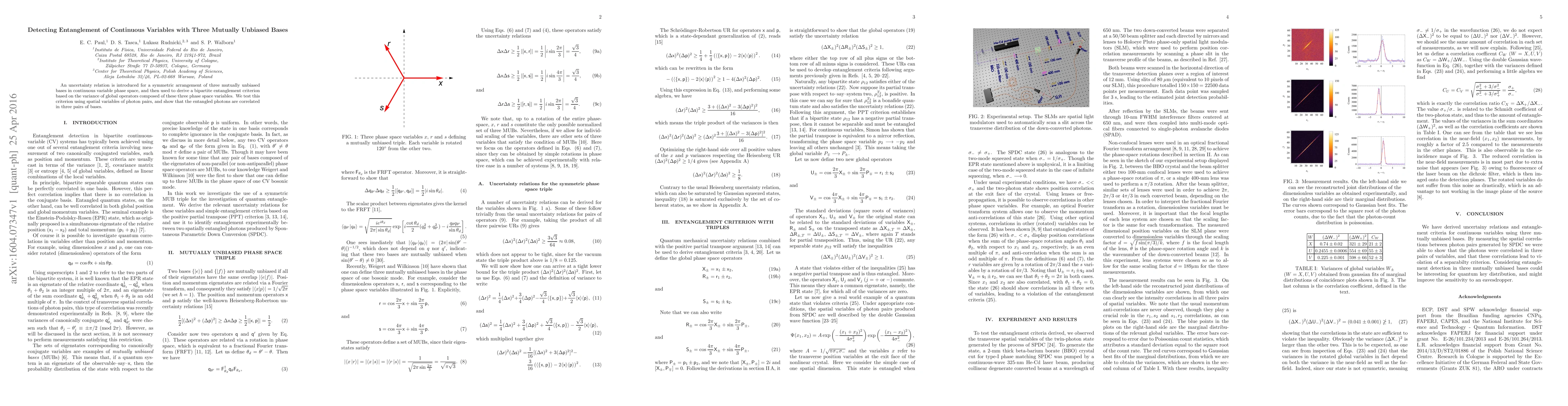 Researchers introduce a new method to detect entanglement in continuous variables using three mutually unbiased bases, which they test with photon pairs and find evidence of correlation between entangled photons.