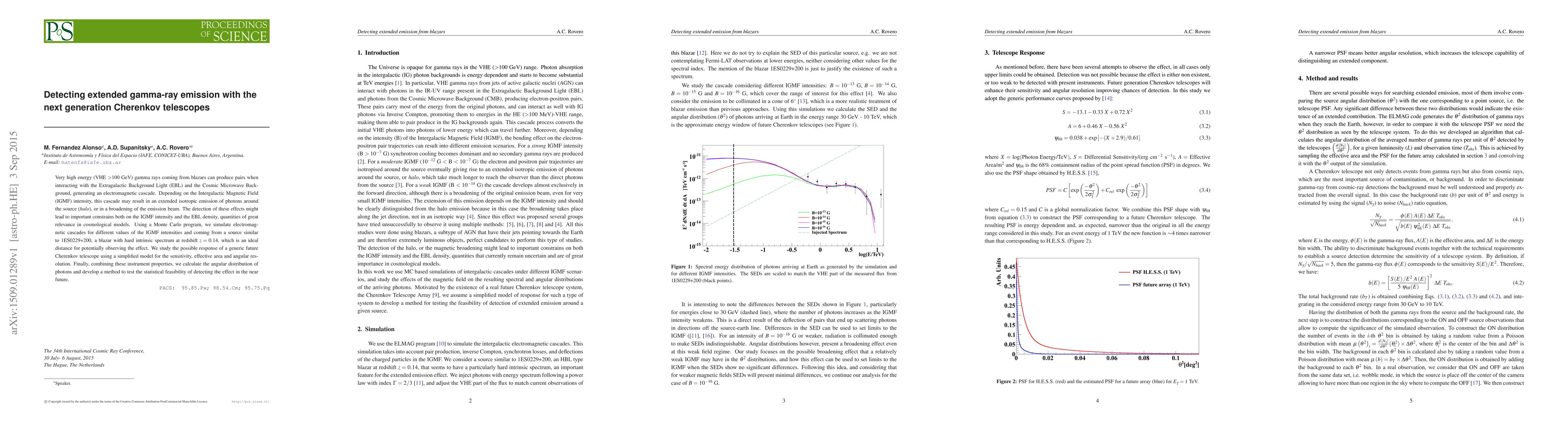 Very high energy (VHE $>$100 GeV) gamma rays coming from blazars can produce pairs when interacting with the Extragalactic Background Light (EBL) and the Cosmic Microwave Background, generating an electromagnetic cascade. Depending on the Intergalactic Magnetic Field (IGMF) intensity, this cascade may result in an extended isotropic emission of photons around the source (halo), or in a broadening of the emission beam. The detection of these effects might lead to important constrains both on the IGMF intensity and the EBL density, quantities of great relevance in cosmological models. Using a Monte Carlo program, we simulate electromagnetic cascades for different values of the IGMF intensities and coming from a source similar to 1ES0229+200, a blazar with hard intrinsic spectrum at redshift $z=0.14$, which is an ideal distance for potentially observing the effect. We study the possible response of a generic future Cherenkov telescope using a simplified model for the sensitivity, effective area and angular resolution. Finally, combining these instrument properties, we calculate the angular distribution of photons and develop a method to test the statistical feasibility of detecting the effect in the near future.