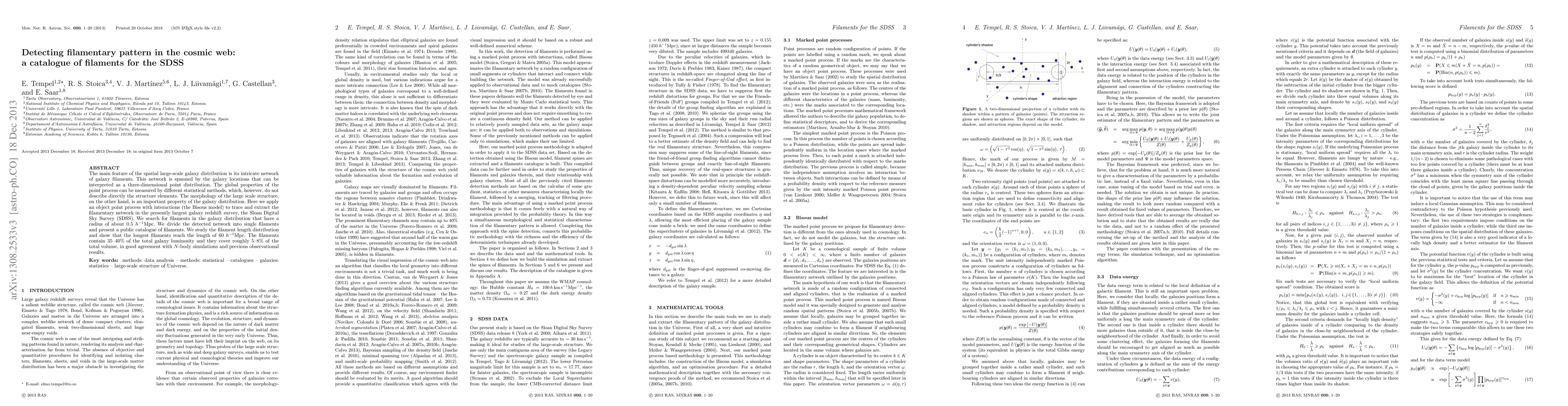 This paper applies the Bisous model to the Sloan Digital Sky Survey (SDSS) to detect and catalogue galaxy filaments, finding that the longest filaments extend up to 60 Mpc/h and occupy 5-8% of the total volume, containing 35-40% of the total galaxy luminosity.