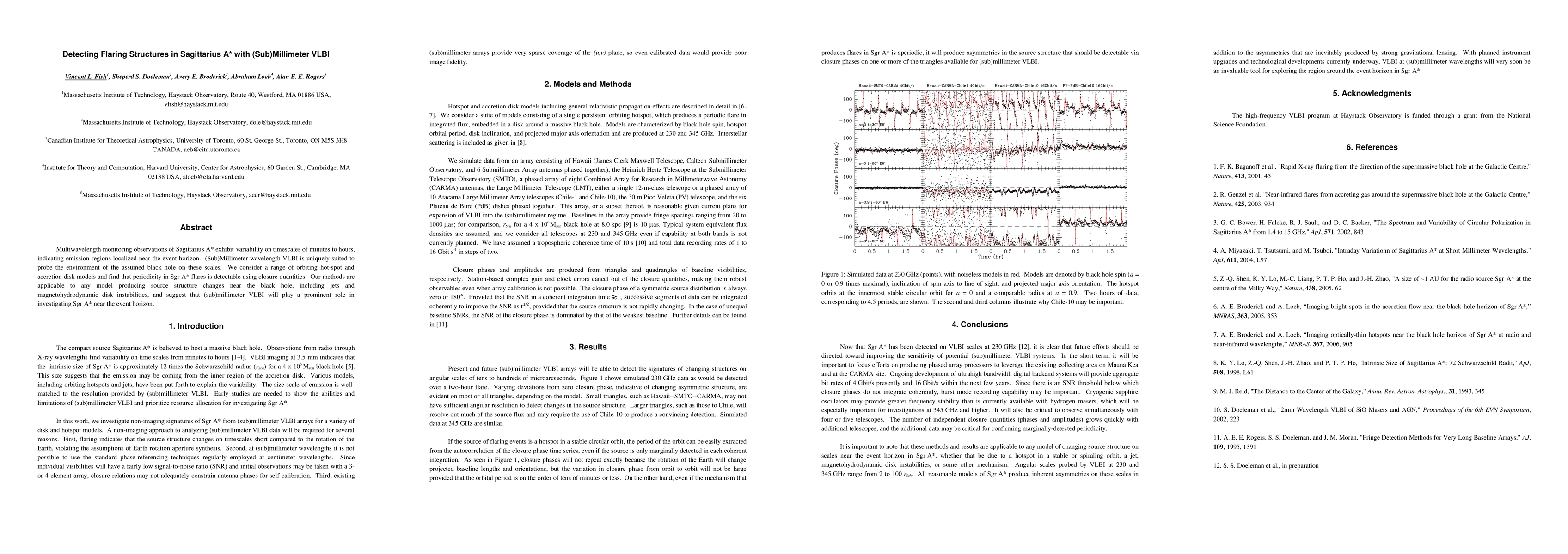 This paper investigates the use of (sub)millimeter VLBI to detect flaring structures near Sagittarius A*, the supermassive black hole at the Milky Way's center. The study finds that periodicity in flares can be identified using closure quantities, suggesting that (sub)millimeter VLBI will be crucial for probing the environment near the event horizon.
