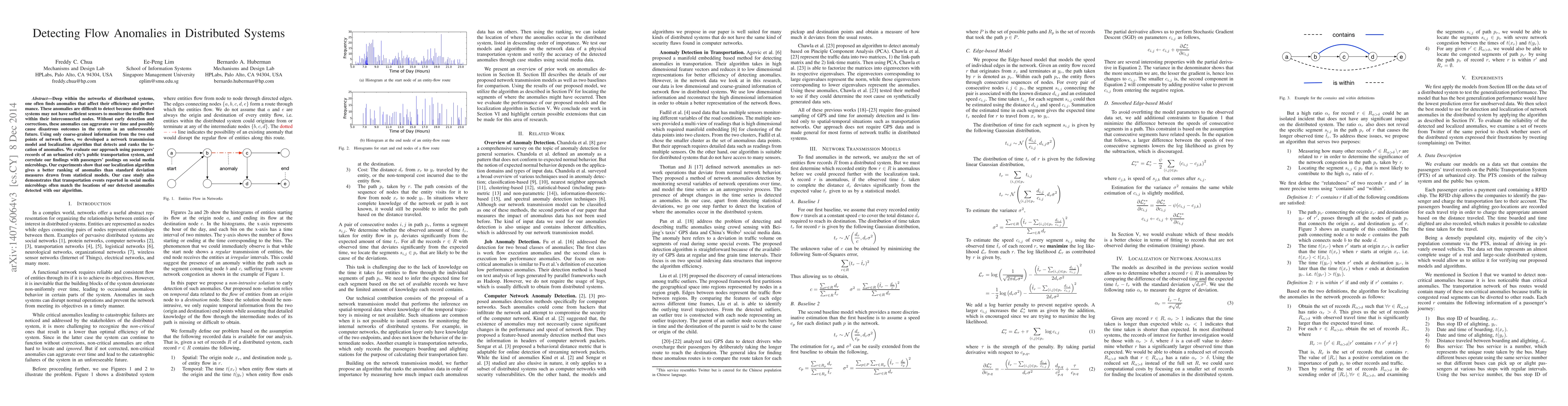 This paper proposes a network transmission model and localization algorithm to detect and rank flow anomalies in distributed systems using coarse-grained endpoint data. Experiments on a public transportation system show that the algorithm outperforms standard statistical measures, and social media data corroborates the algorithm's effectiveness in anomaly localization.