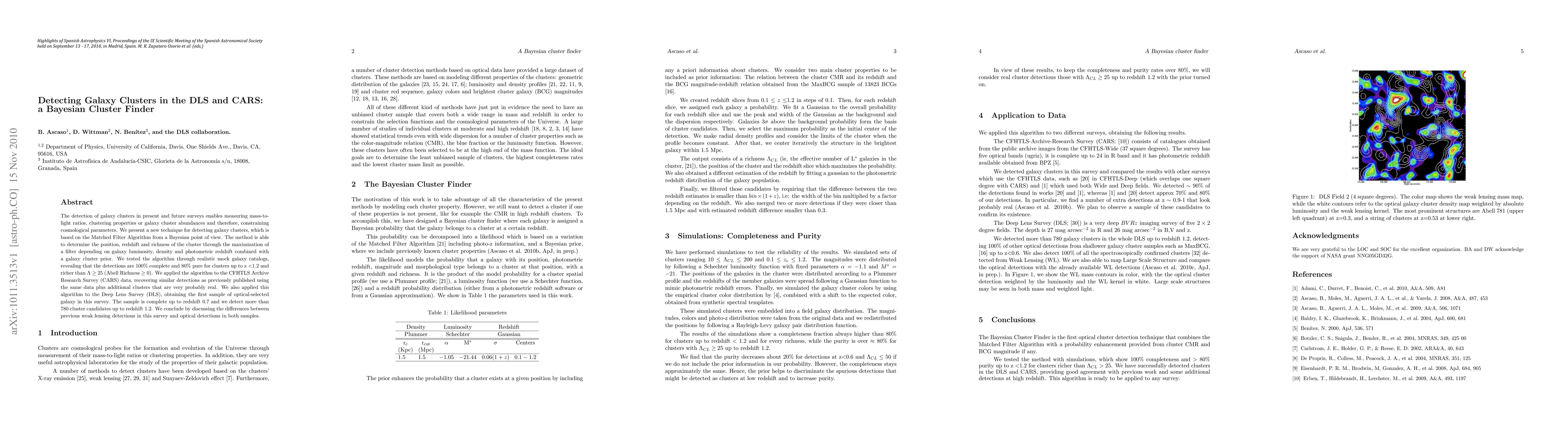 This paper introduces a Bayesian cluster-finding technique based on the Matched Filter Algorithm, achieving 100% completeness and 80% purity in detecting galaxy clusters up to redshift z <1.2. It successfully applied the method to the CARS and DLS surveys, identifying additional clusters and providing a new sample of optical-selected galaxy clusters.