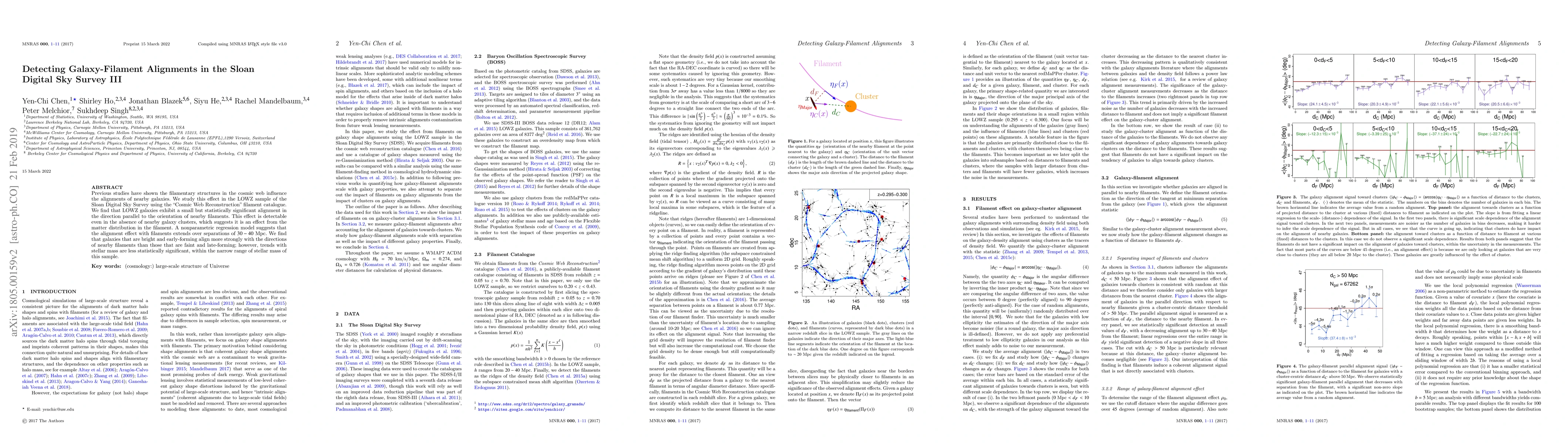 This study reveals a statistically significant alignment of galaxies in the LOWZ sample of the Sloan Digital Sky Survey with nearby cosmic filaments, detectable even without galaxy clusters. Bright and early-forming galaxies show stronger alignment with filament directions compared to faint and late-forming ones.
