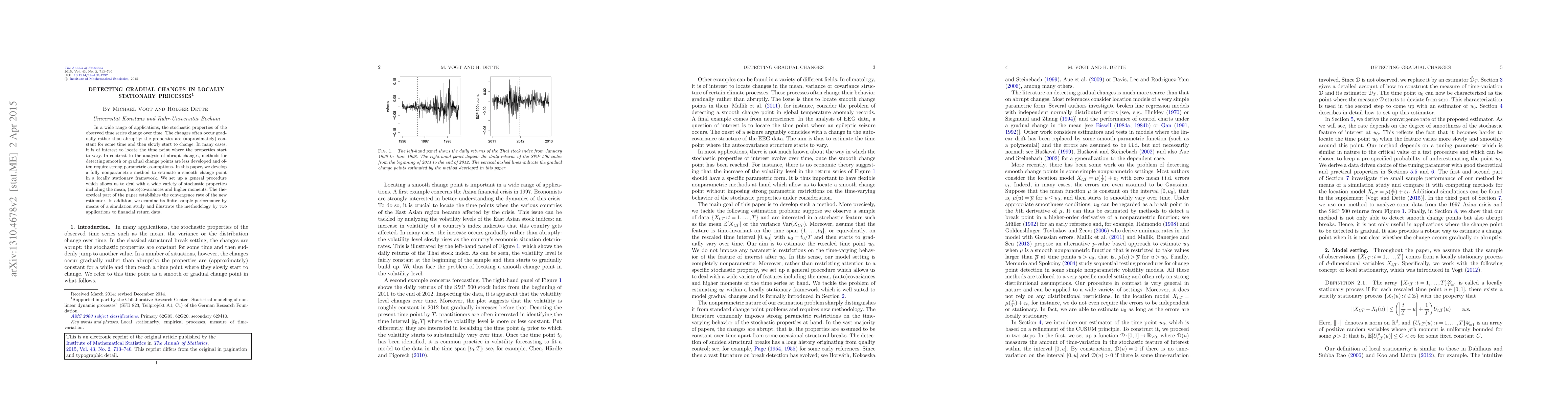 This paper develops a fully nonparametric method for detecting gradual changes in locally stationary time series processes, focusing on estimating smooth change points without strong parametric assumptions. The method is shown to have a well-established convergence rate and is validated through simulations and applications to financial return data.
