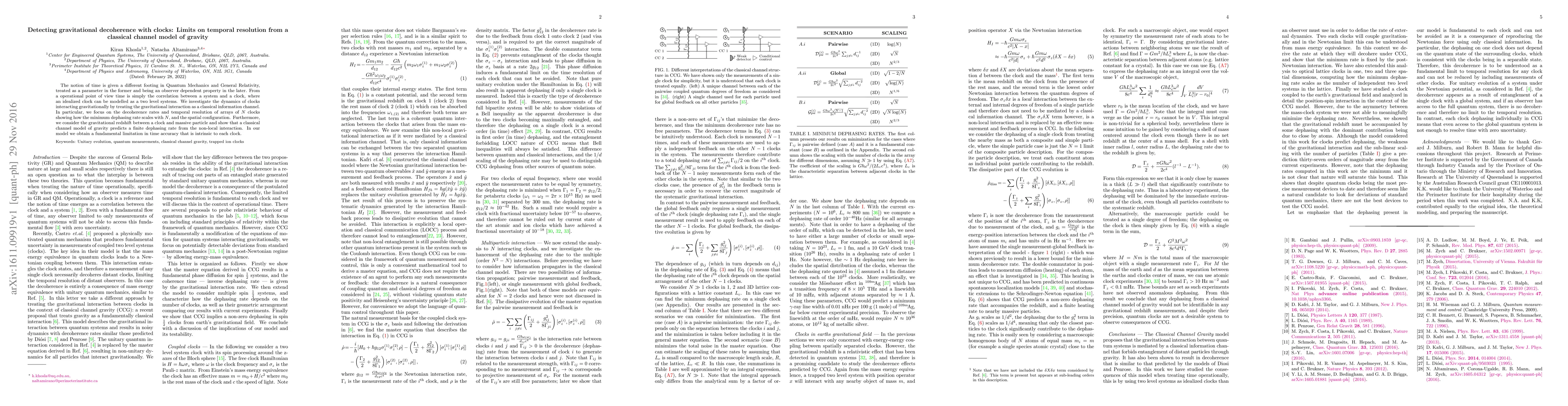 Researchers investigate how gravitational interactions affect clocks in quantum mechanics, finding a fundamental limit on time accuracy due to decoherence rates and non-local interactions.