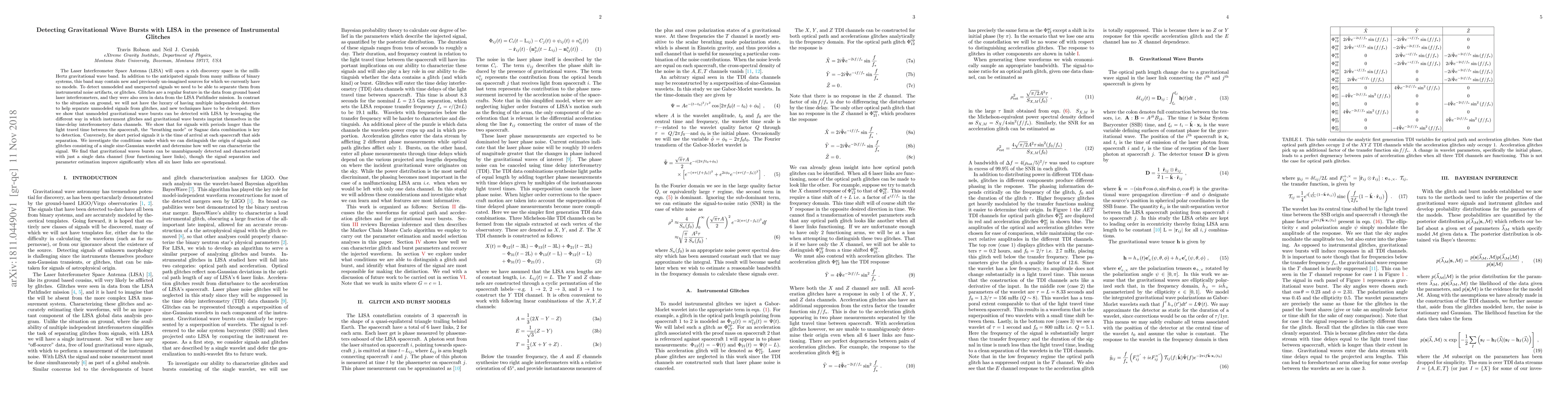 This paper explores techniques for detecting unmodeled gravitational wave bursts with LISA amidst instrumental glitches, demonstrating that distinguishing these signals from glitches relies on analyzing the time-delay interferometry data channels. It concludes that while single-channel data can detect bursts, utilizing all six laser links enhances signal separation and characterization.