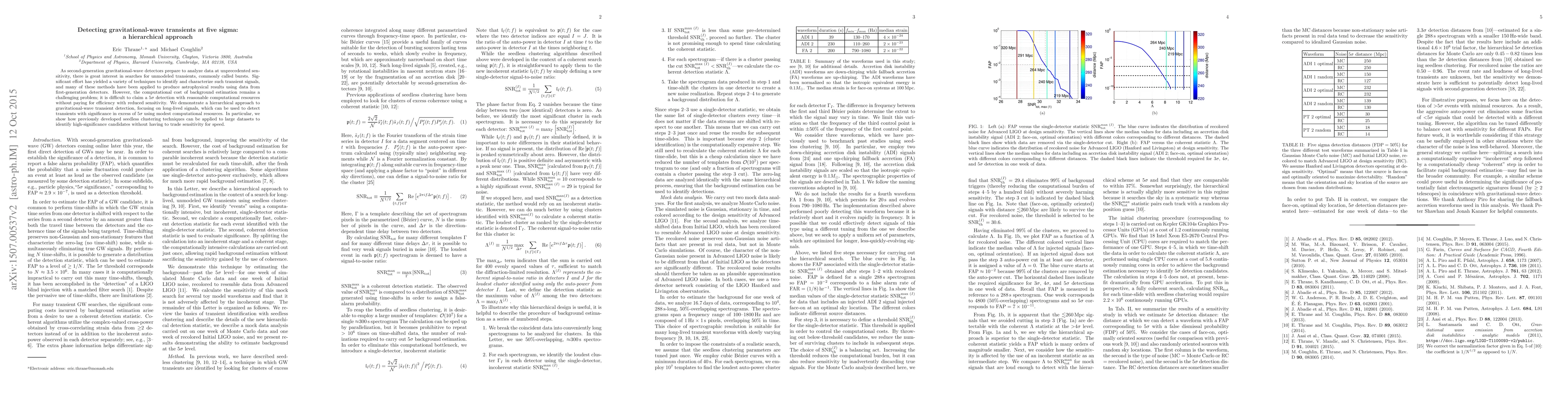 This paper proposes a hierarchical method for detecting gravitational-wave transients with over 5σ significance using modest computational resources. It leverages seedless clustering techniques to efficiently identify high-significance candidates in large datasets without sacrificing sensitivity.